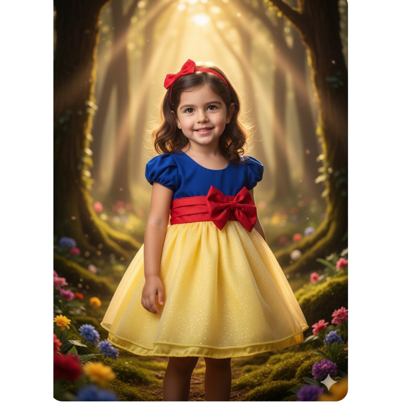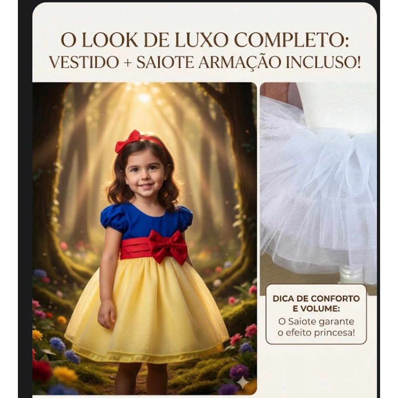 Vestido Festa Infantil Princesa Branca de neve e os Sete anoes 1 a 3 anos