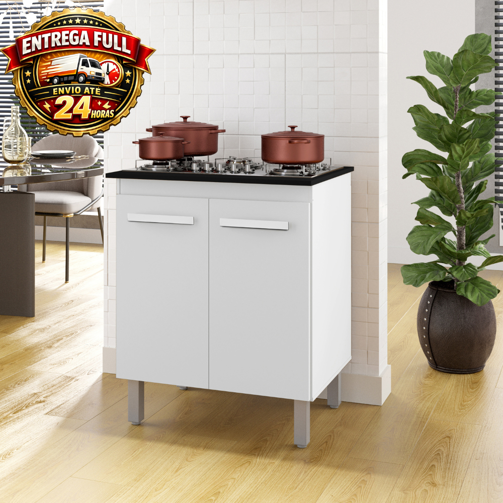 Balcão para Cozinha Cooktop 4 e 5 Bocas com 2 Portas Resistente e Compacto Jade Branco - TrialMoveis