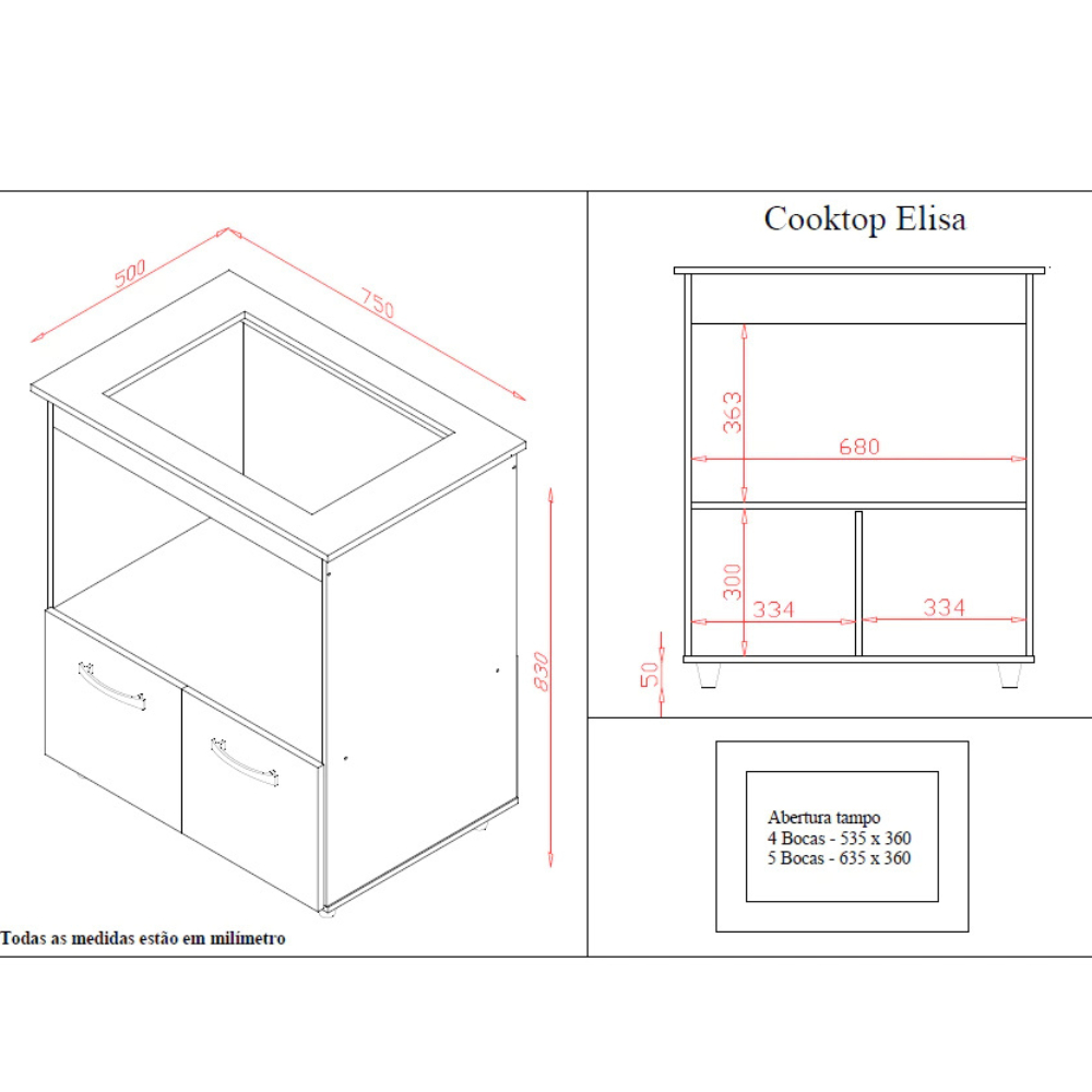 Balcão Para Cooktop 4 e 5 Bocas 2 Portas Armário de Cozinha Elisa - TrialMoveis
