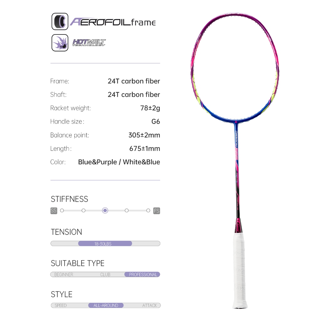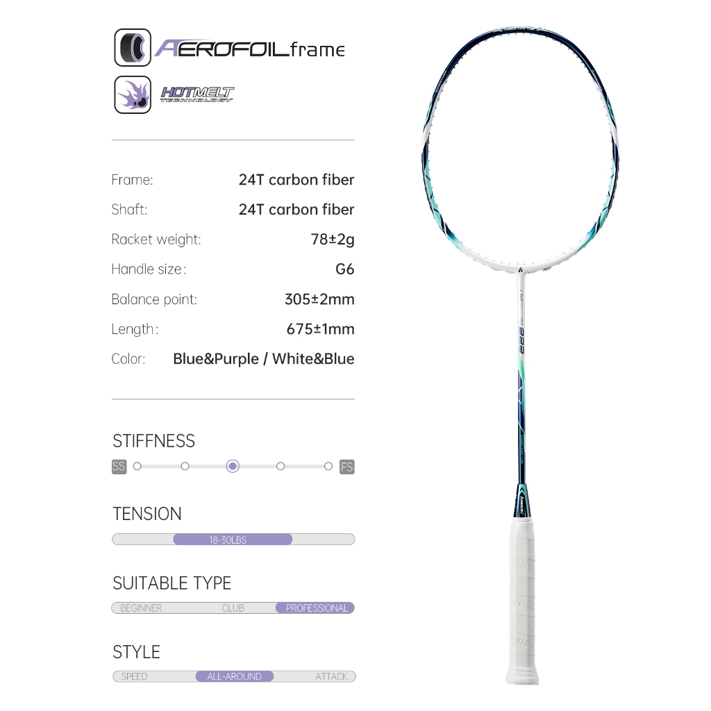Raquete De Badminton Kawasaki DRAGON 222 5U 18-30LBS 100 % Fibra De Carbono Para Iniciantes E Estudantes