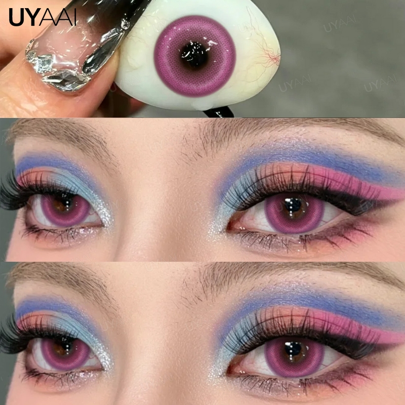 UYAAI 1lente De Contato De Pele Olhos Rosa De Coelhinho Fashion Pink Pretty Girl Maquiagem Vermelhos Púrpura