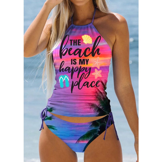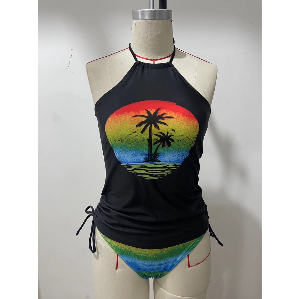 biquíni de duas peças / biquíni feminino Conservador Impressão Multicolor Colorido Fato de banho