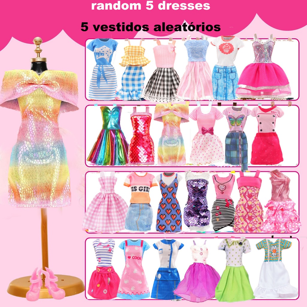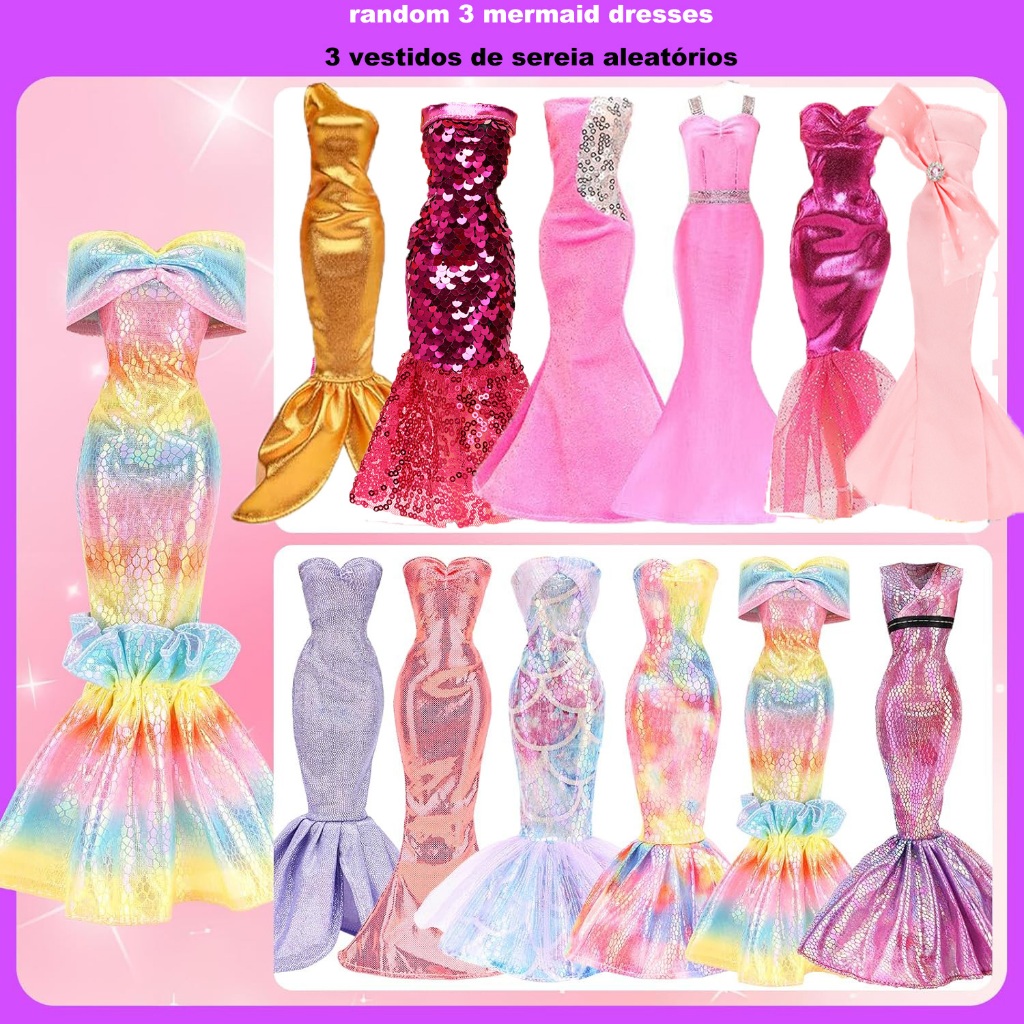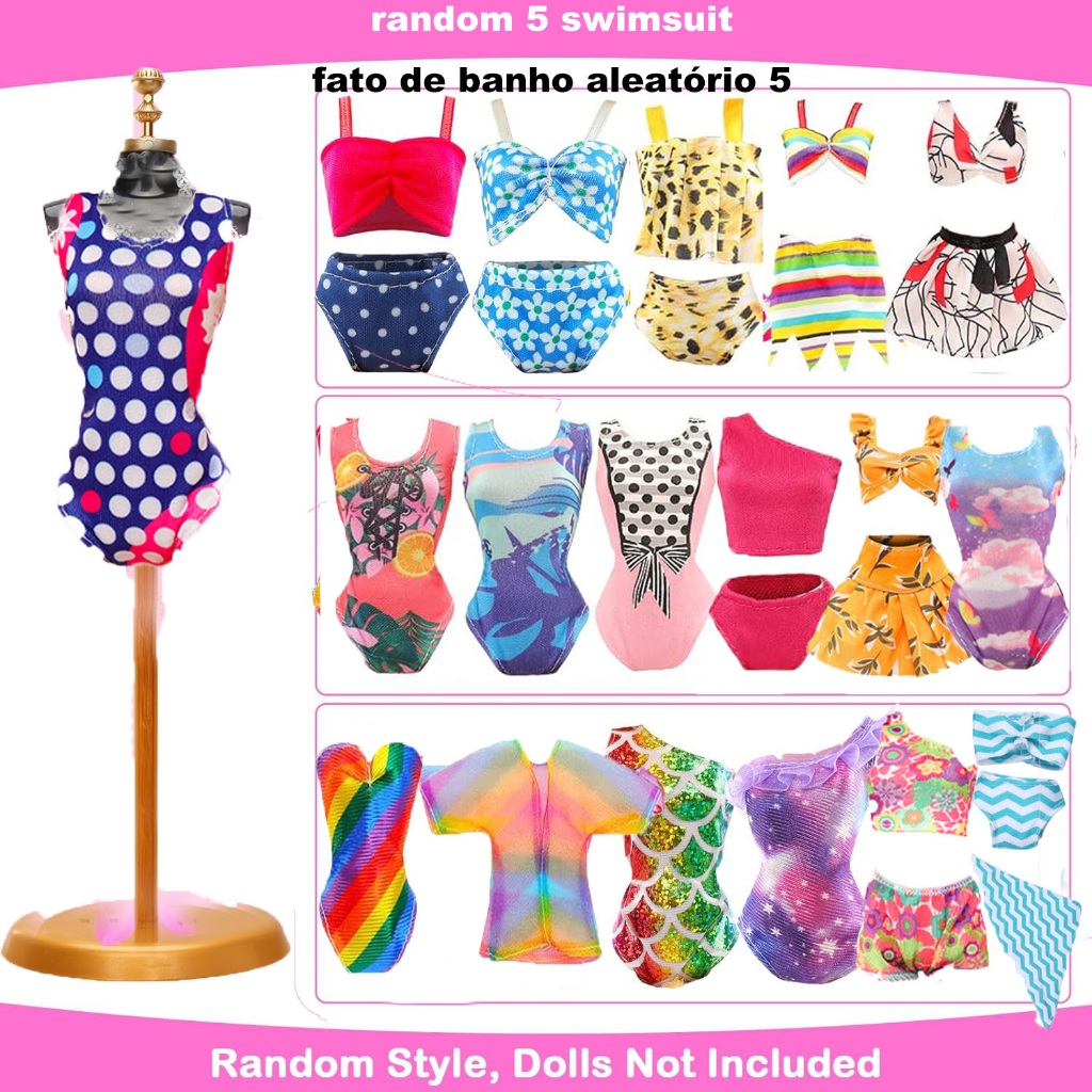 49 Peças Roupas E Acessórios Para Bonecas 3 Vestidos De Casamento Sereia 5 Tops Calças 5 Da Moda 5 Maiôs Biquíni 10 Cabi