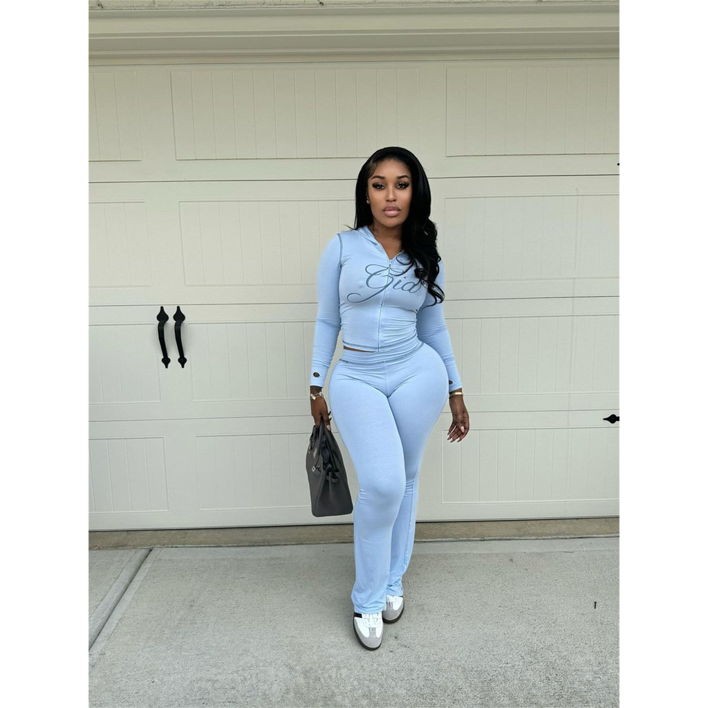 Mulheres Sexy Zipper Up Hoodie E Calças Conjunto De 2 Peças Y2k Set