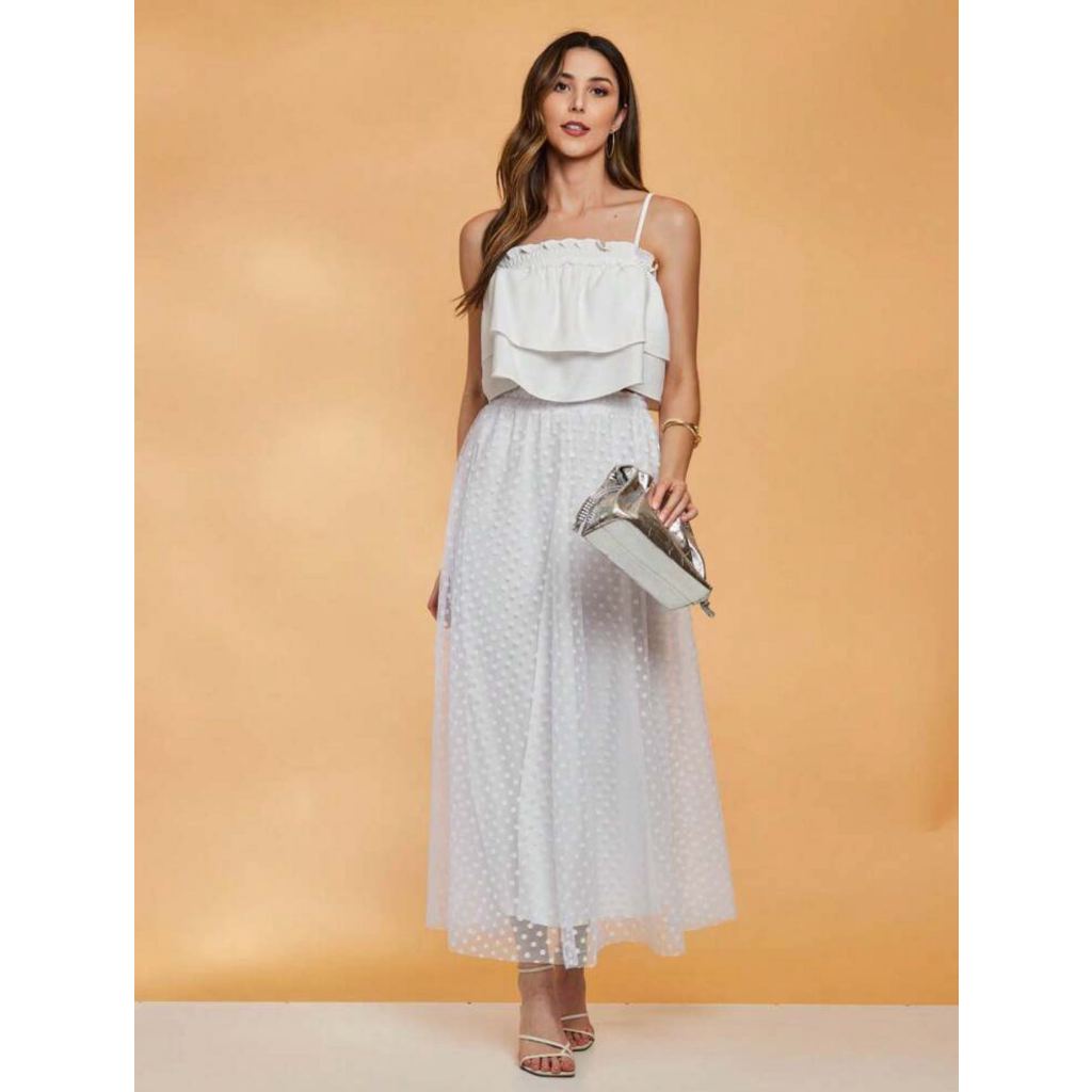 Saia Longo Tule bolinha -047