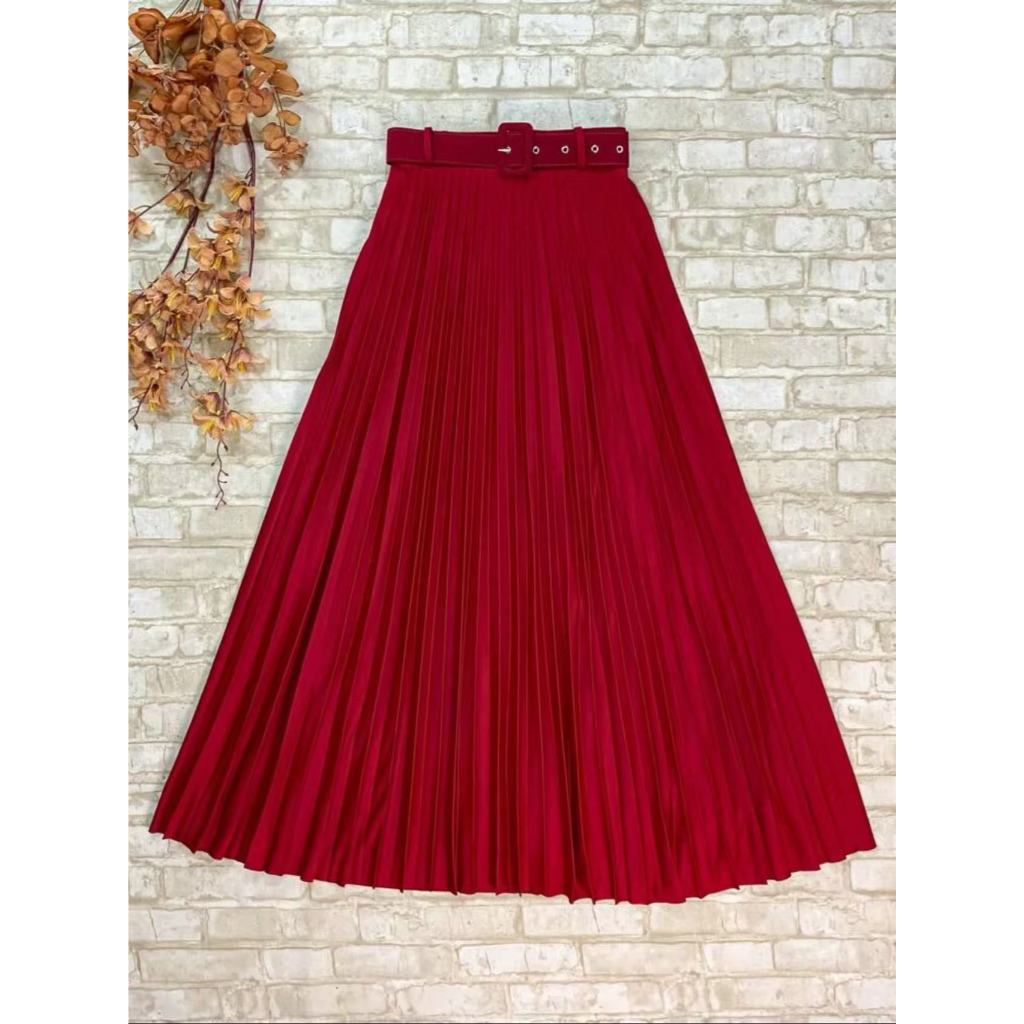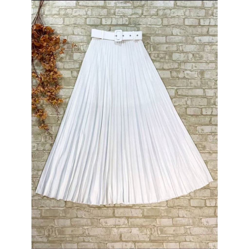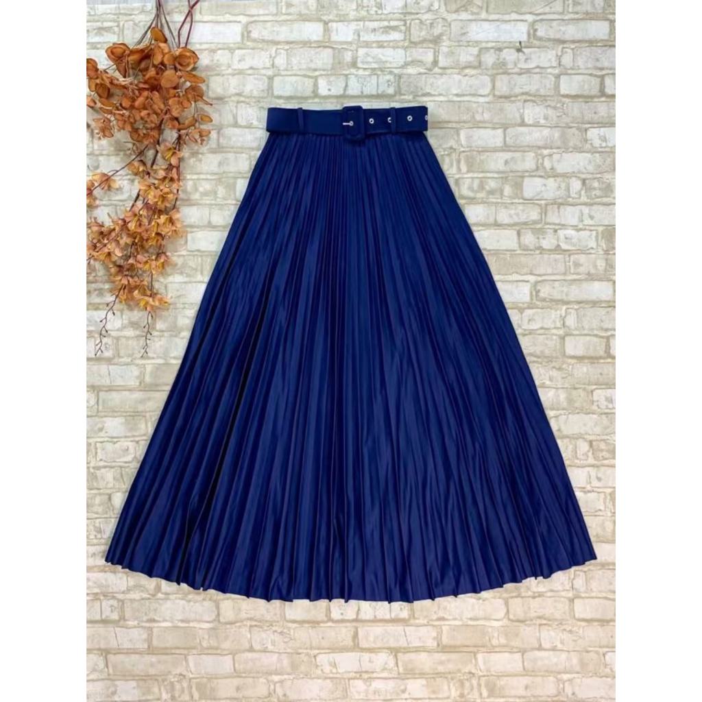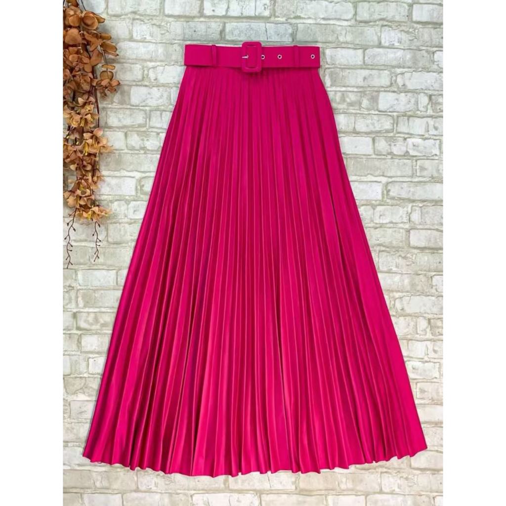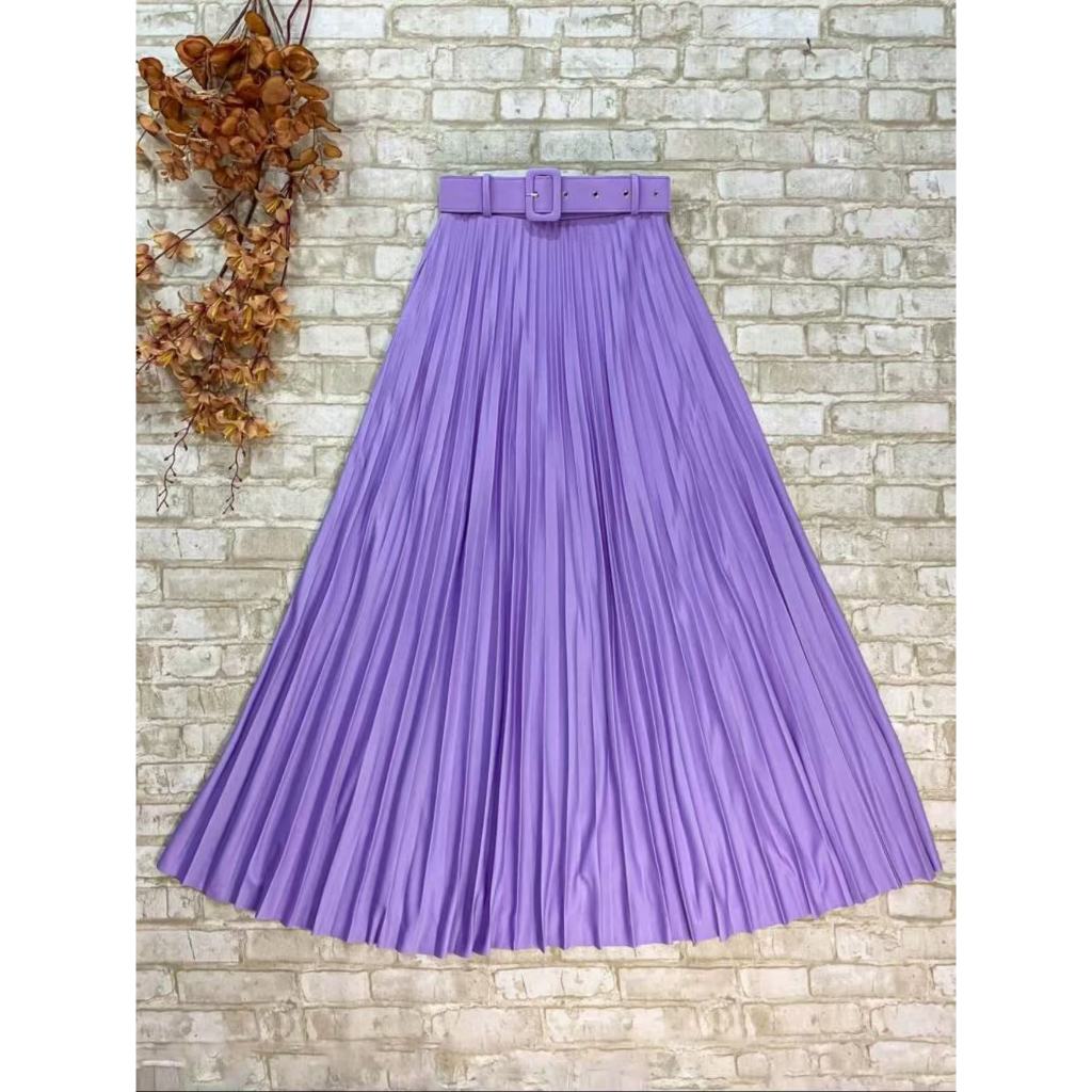 Saia Longa Plissada Com Cinto Lisa Com Forro Moda Evangelica -054