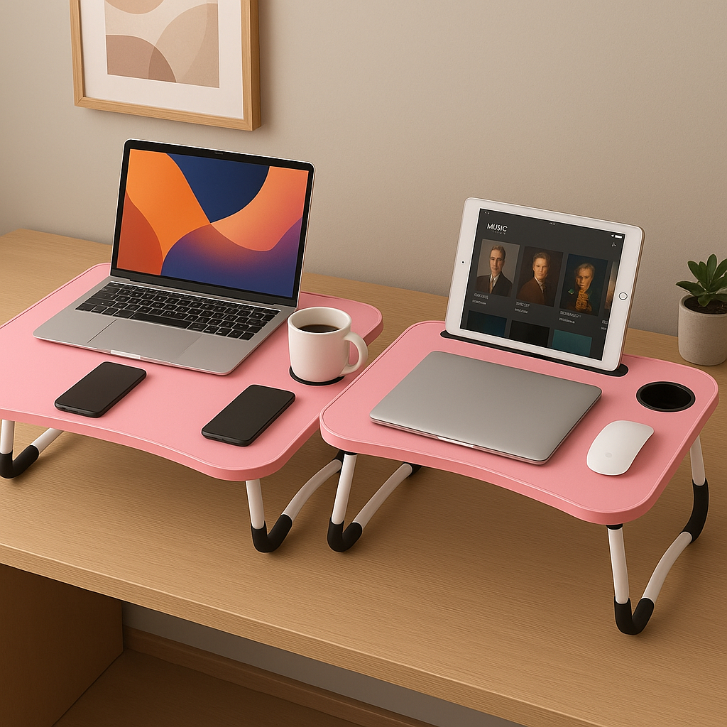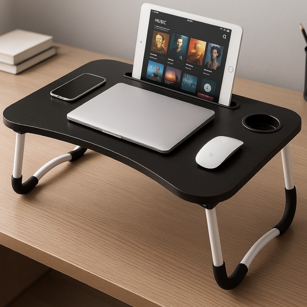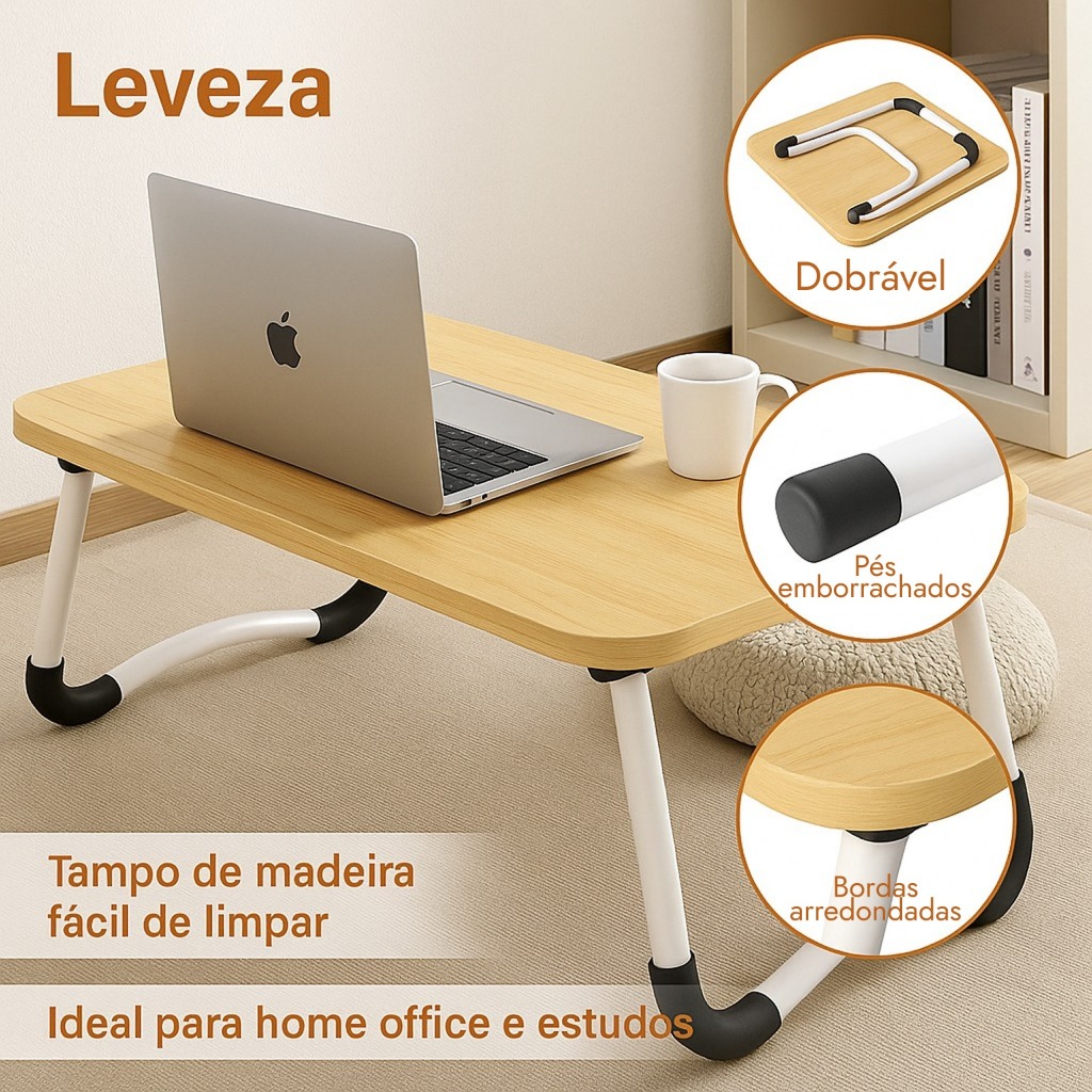 Mesa Dobrável Portátil Multiuso Para Notebook Home Office Sala Cozinha Com Gaveta e Porta Canetas