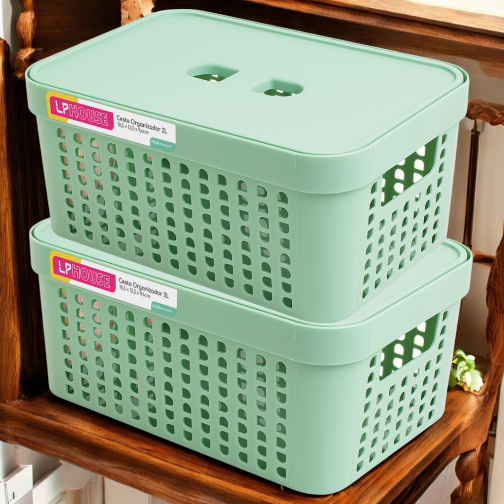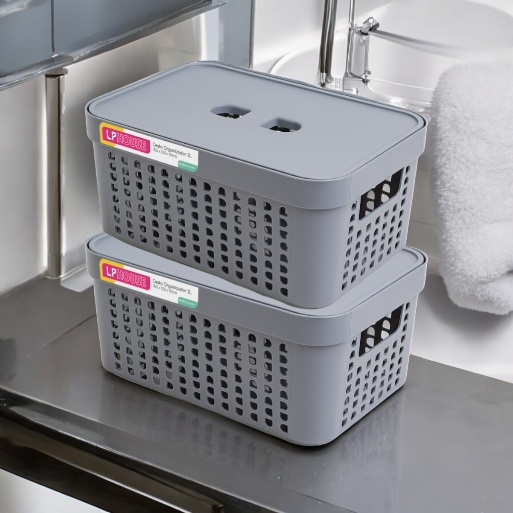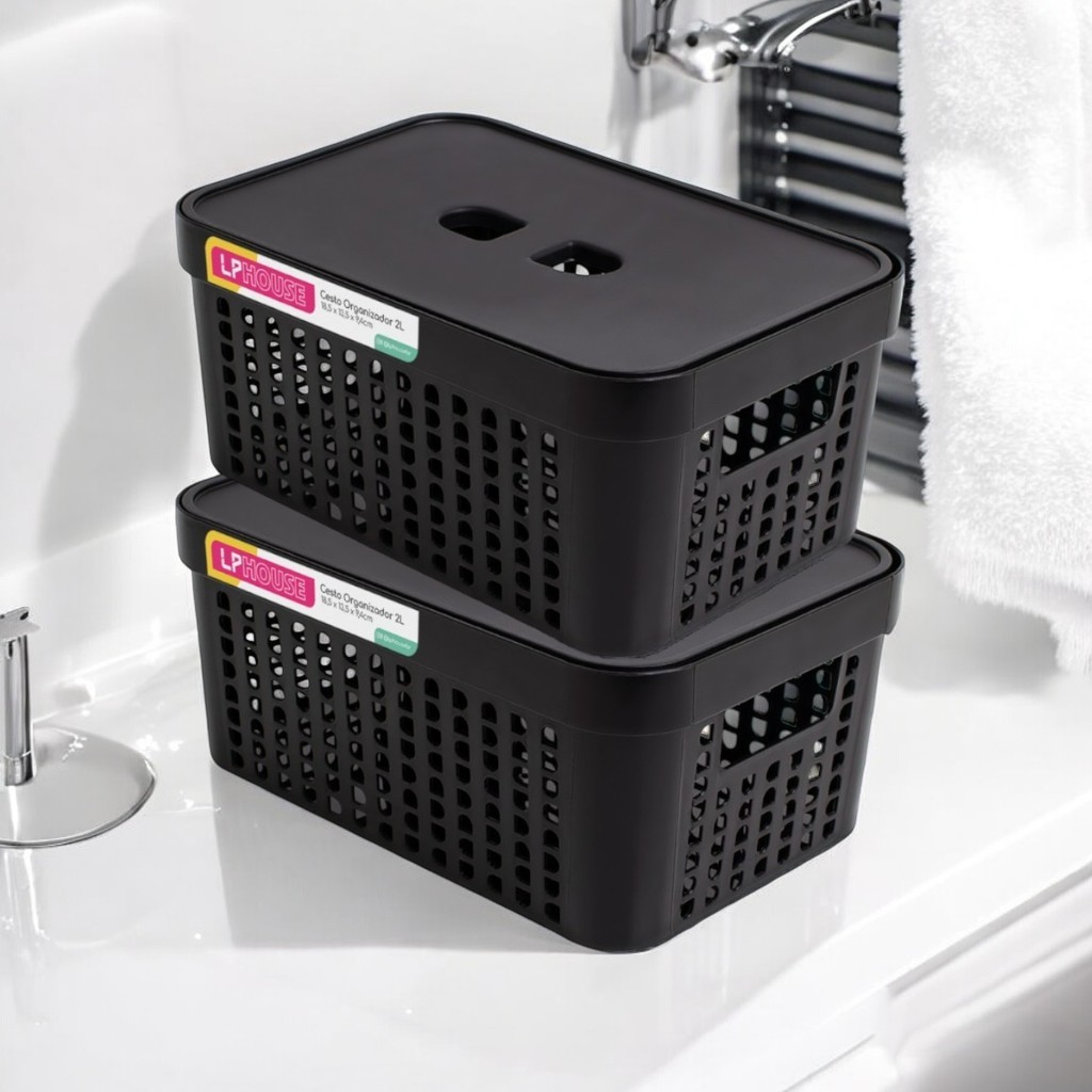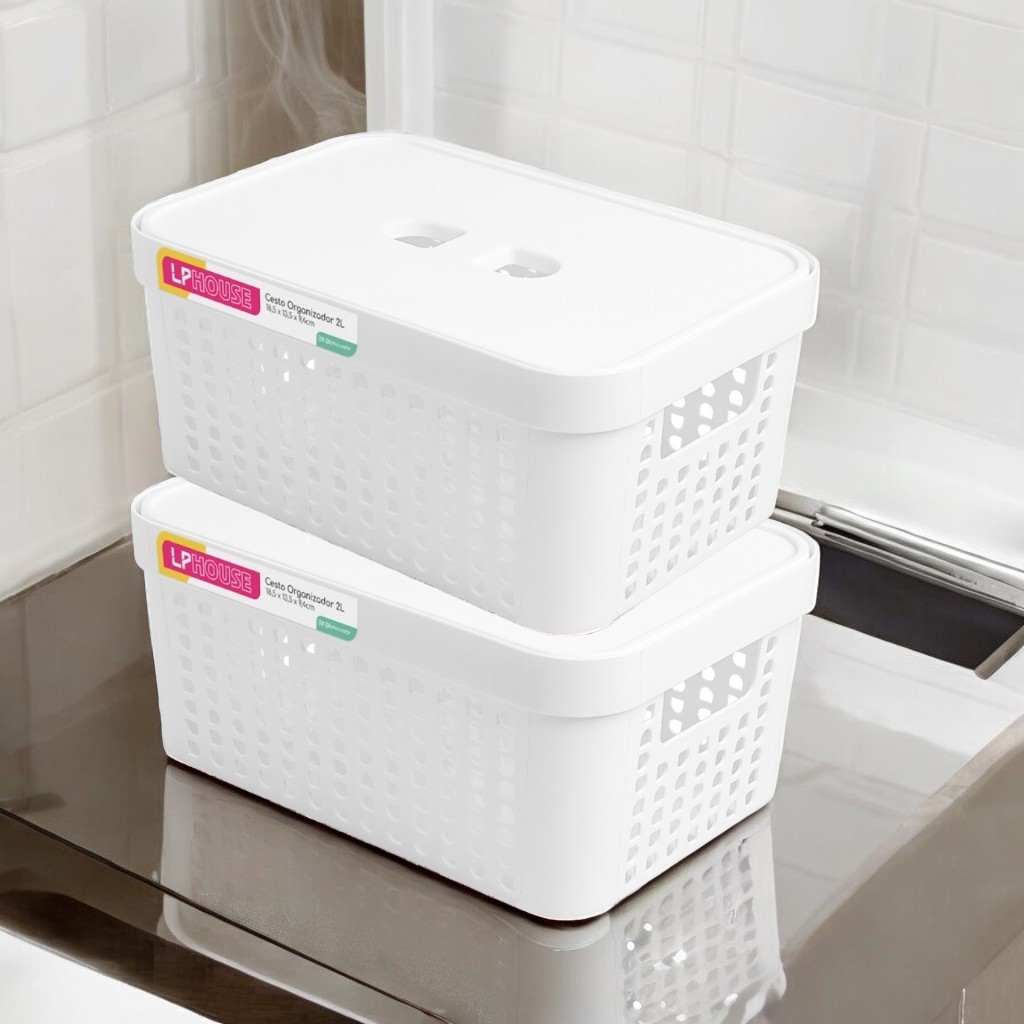 Kit 2 Caixas Organizadoras com Tampa 2 Litros em Plástico Multiuso Para Organização Cozinha Banheiro