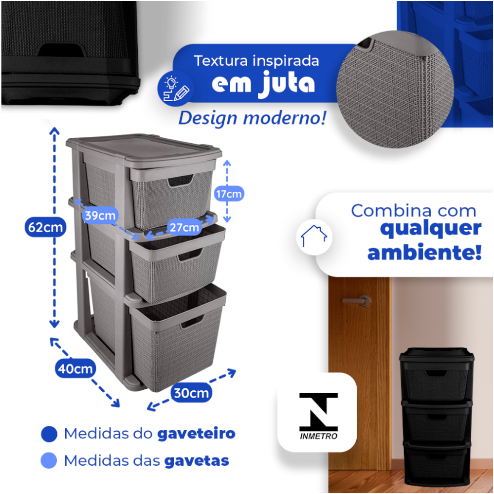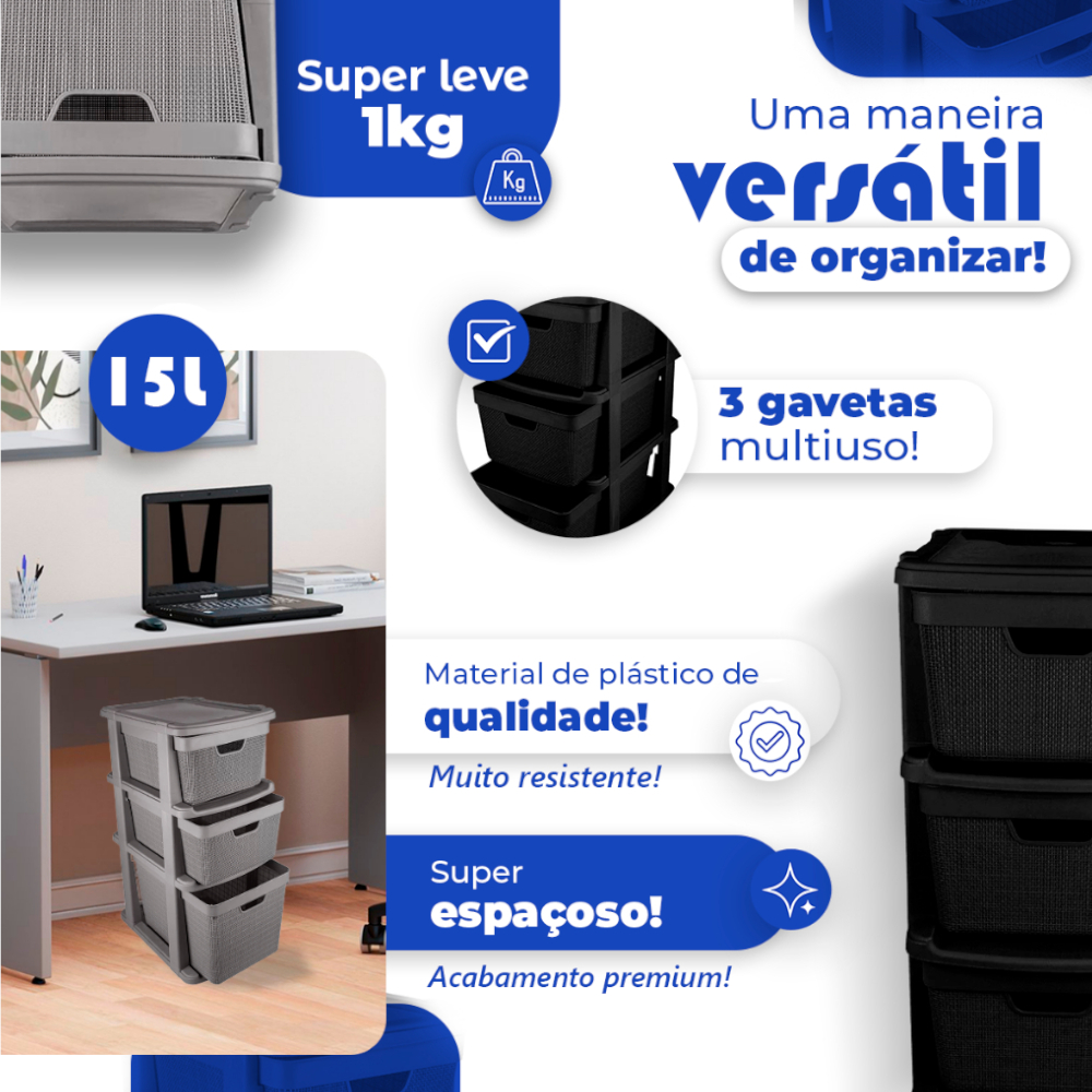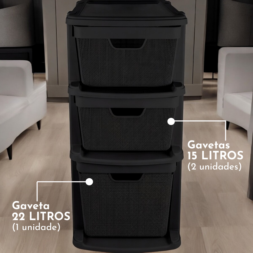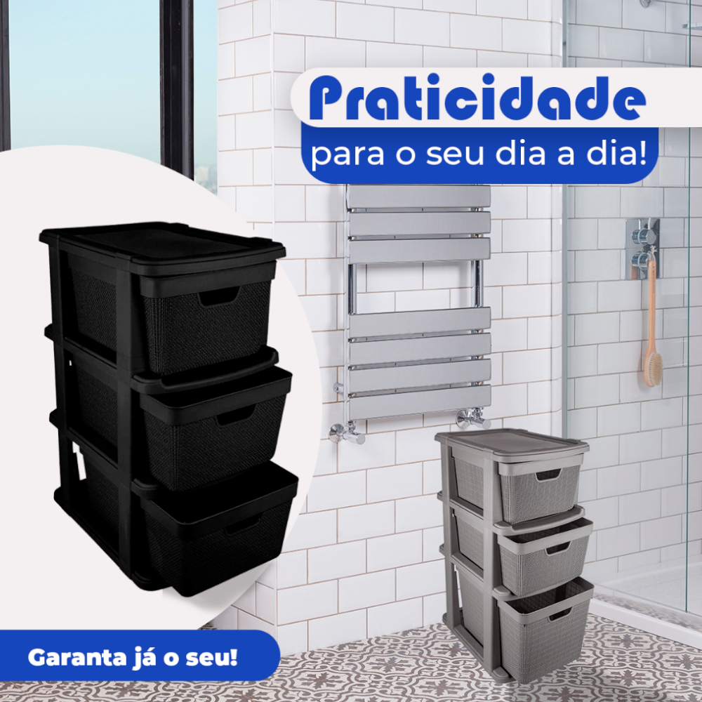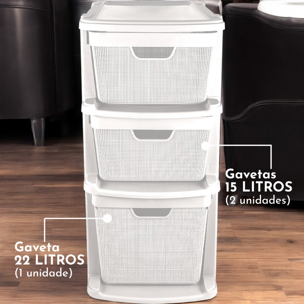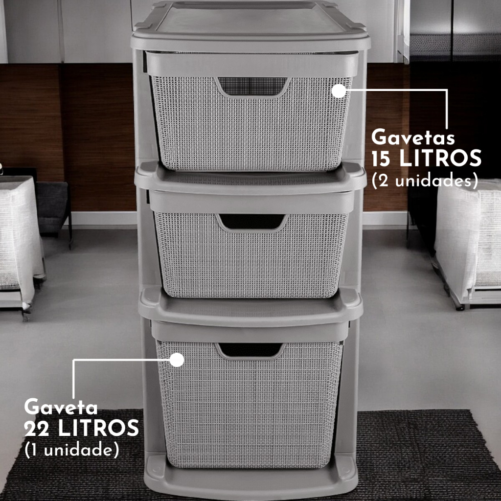 Gaveteiro Organizador de Chão com 3 Gavetas em Plástico Jutta 15 Litros 22 Litros Organização Jaguar