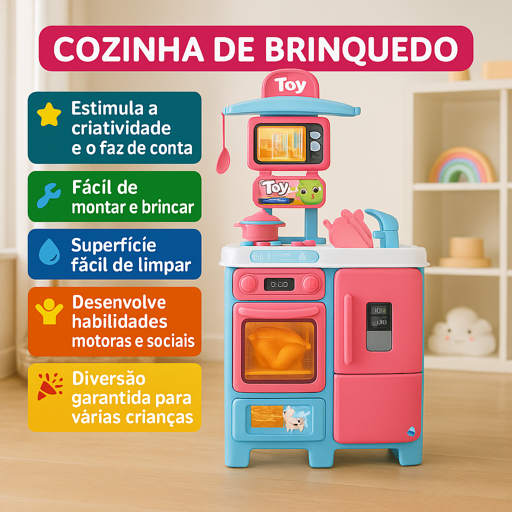 Cozinha Infantil Grande Completa Com Geladeira Menina Sai Água de Verdade 92 Cm