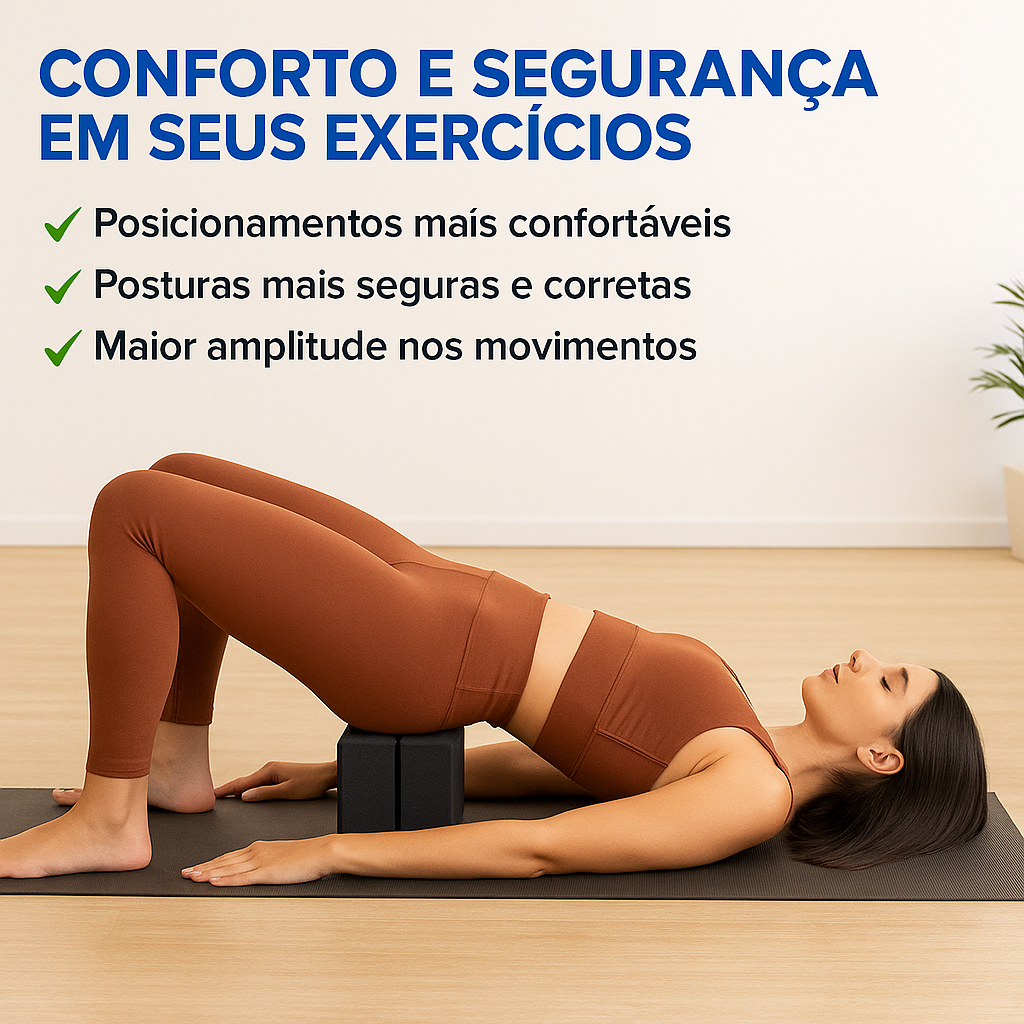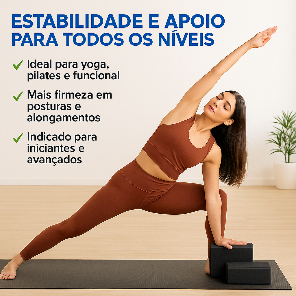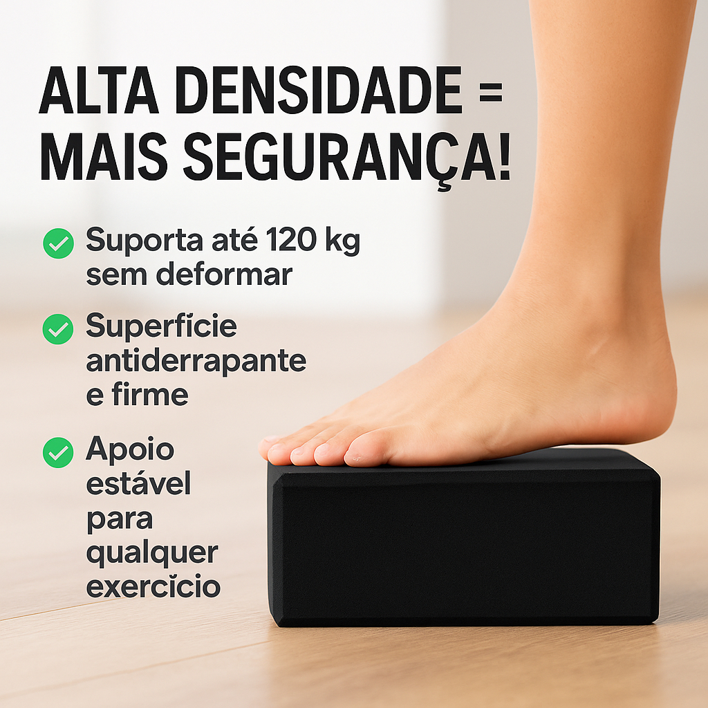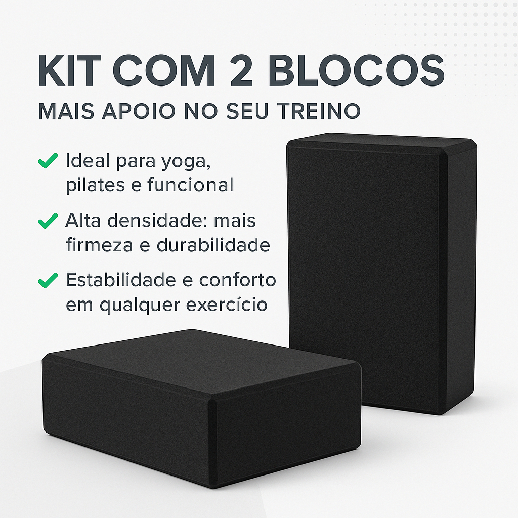 Kit 2 Tijolos de Yoga EVA Bloco Pilates Alongamento Ioga Meditação Alta Densidade Funcional Preto