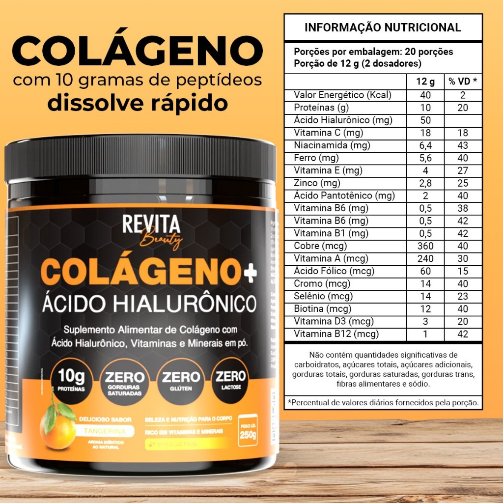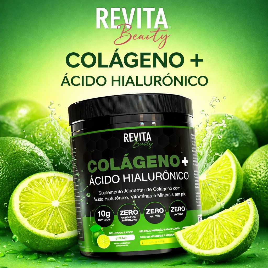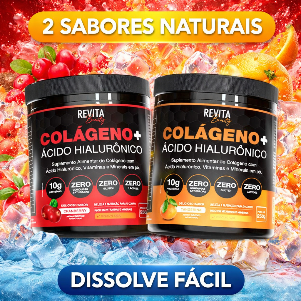 Colágeno com Ácido Hialurônico Zero Açúcar | 3 SABORES E O ÚNICO COM POTE DE 250G - Revita Beauty