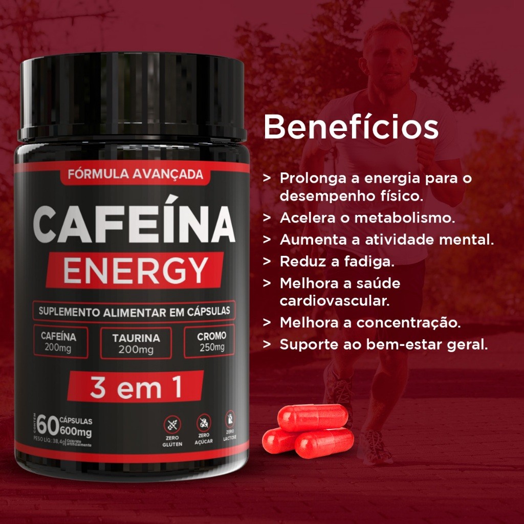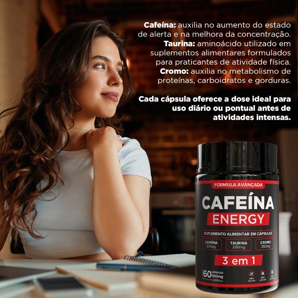 Cafeína Taurina e Cromo + Energia, Foco e Performance Máxima - 60 Cápsulas Envio Imediato