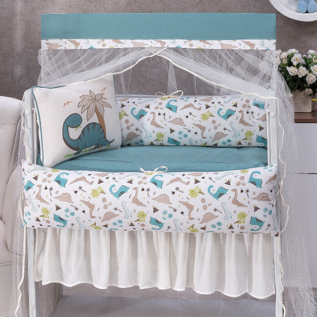 KIT ENXOVAL PARA MINI BERÇO DINOSSAURO VERDE NEUTRO MENINO