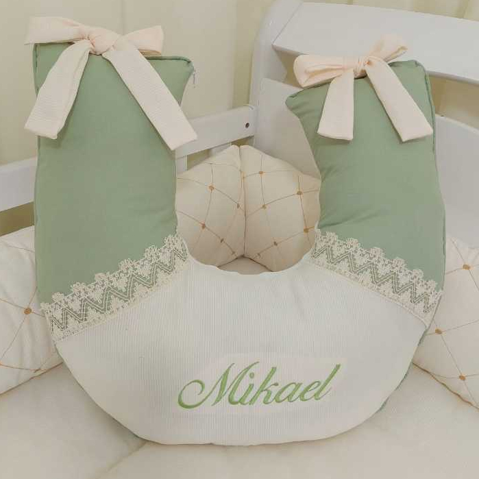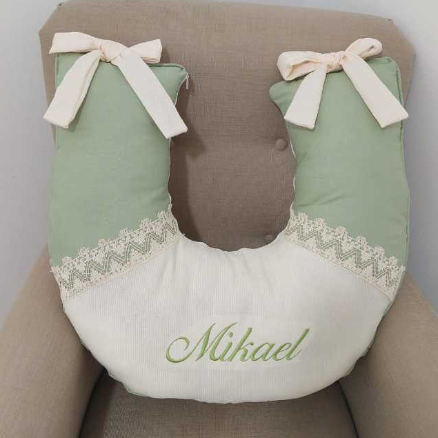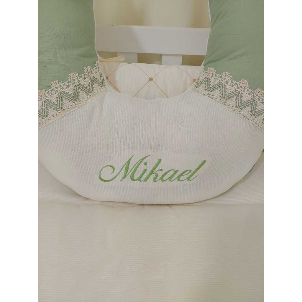 ALMOFADA DE AMAMENTAÇÃO PALHA COM VERDE CHÁ E GRIPIER PERSONALIZO O NOME DO SEU BEBÊ LUXO DELICADA