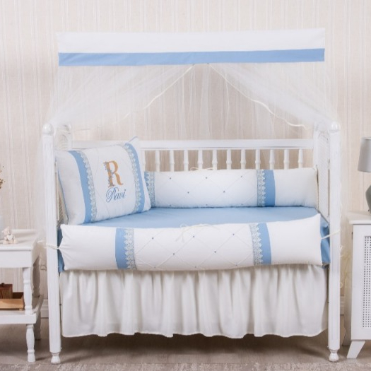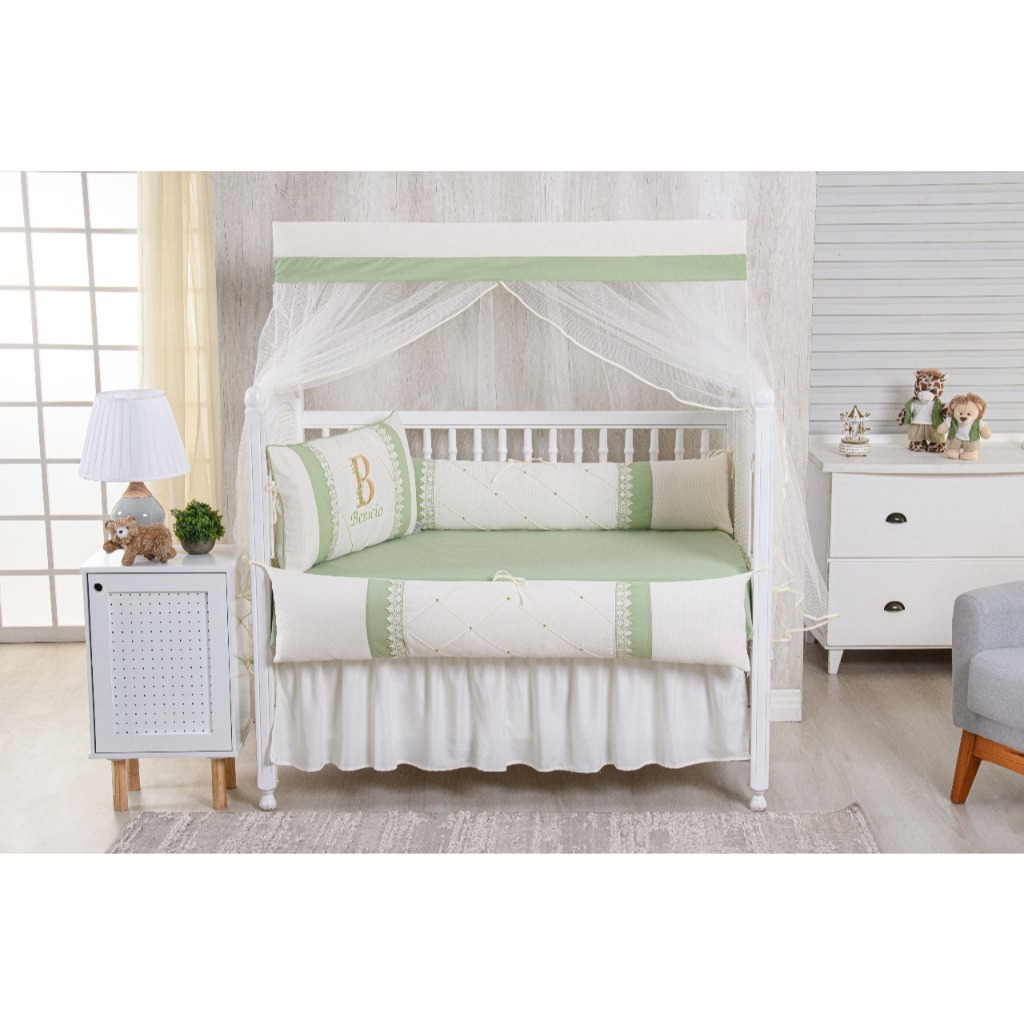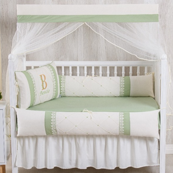 KIT BERÇO AMERICANO 8PÇS - 519 -PERSONALIZADO INICIAL E NOME DO BEBÊ-JA INCLUSO A SAIA MENINO/MENINA