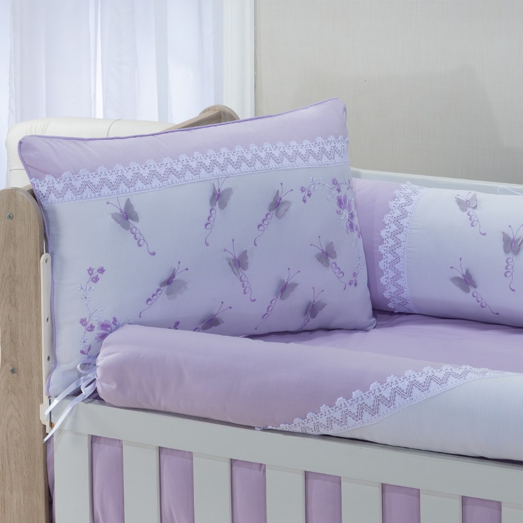 KIT ENXOVAL PARA BERÇO BORBOLETAS LILAS 9 PEÇAS MENINA + SAIA BRANCA