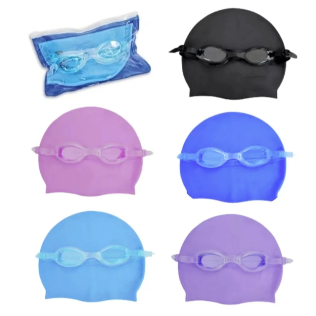 Kit De Natacao com Touca Silicone E Oculos Para jovens E Adultos