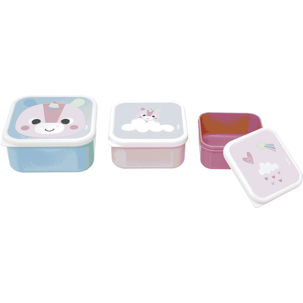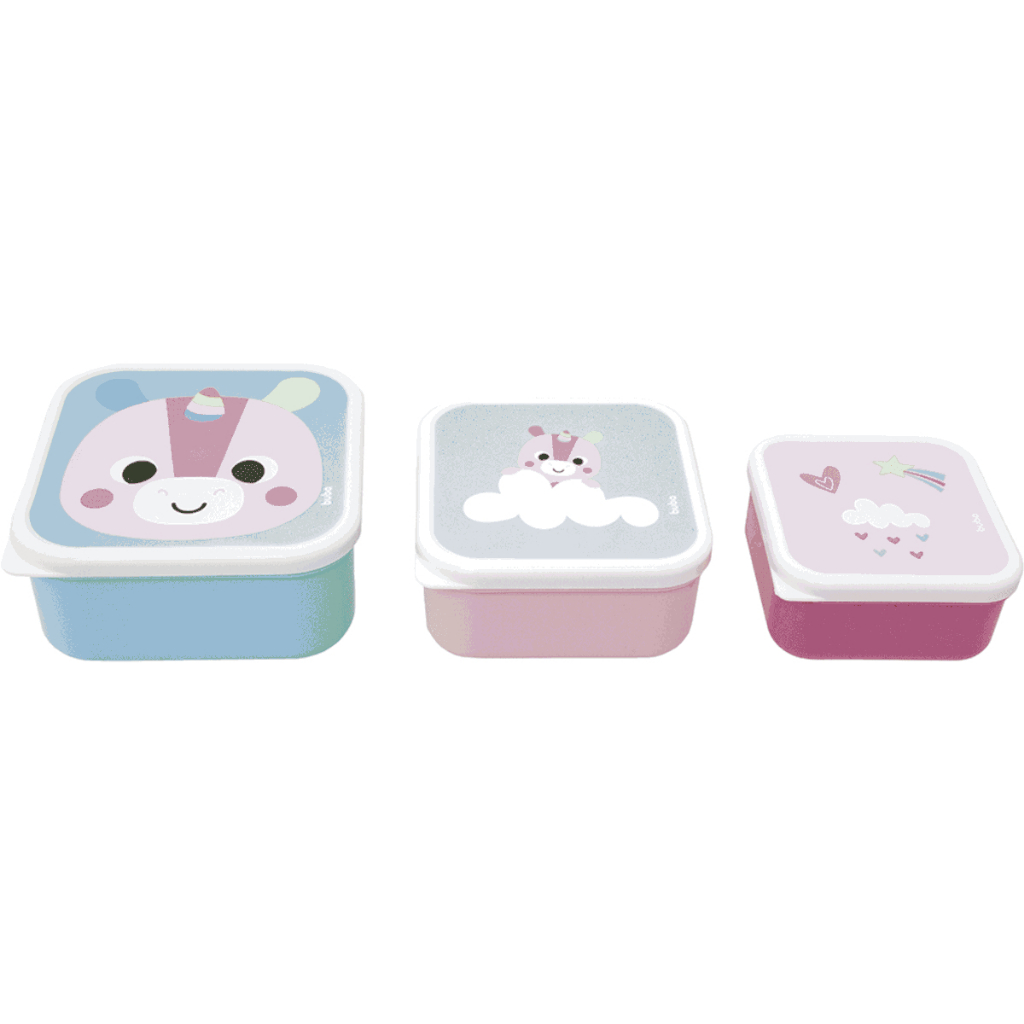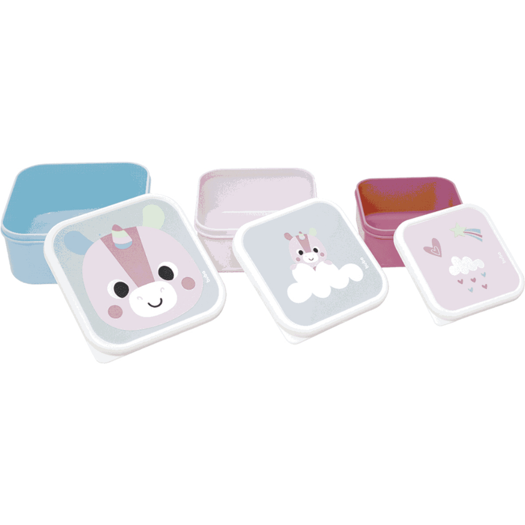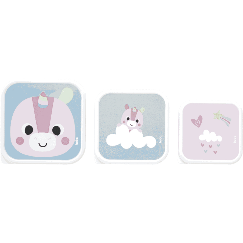 Kit 3 Potinhos Unicórnio - para armazenar comida e lanche - Infantil - Zoo Buba