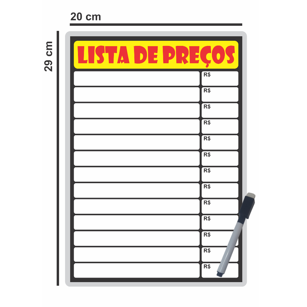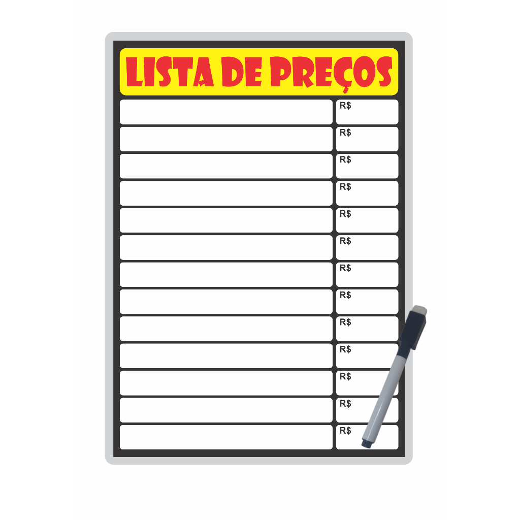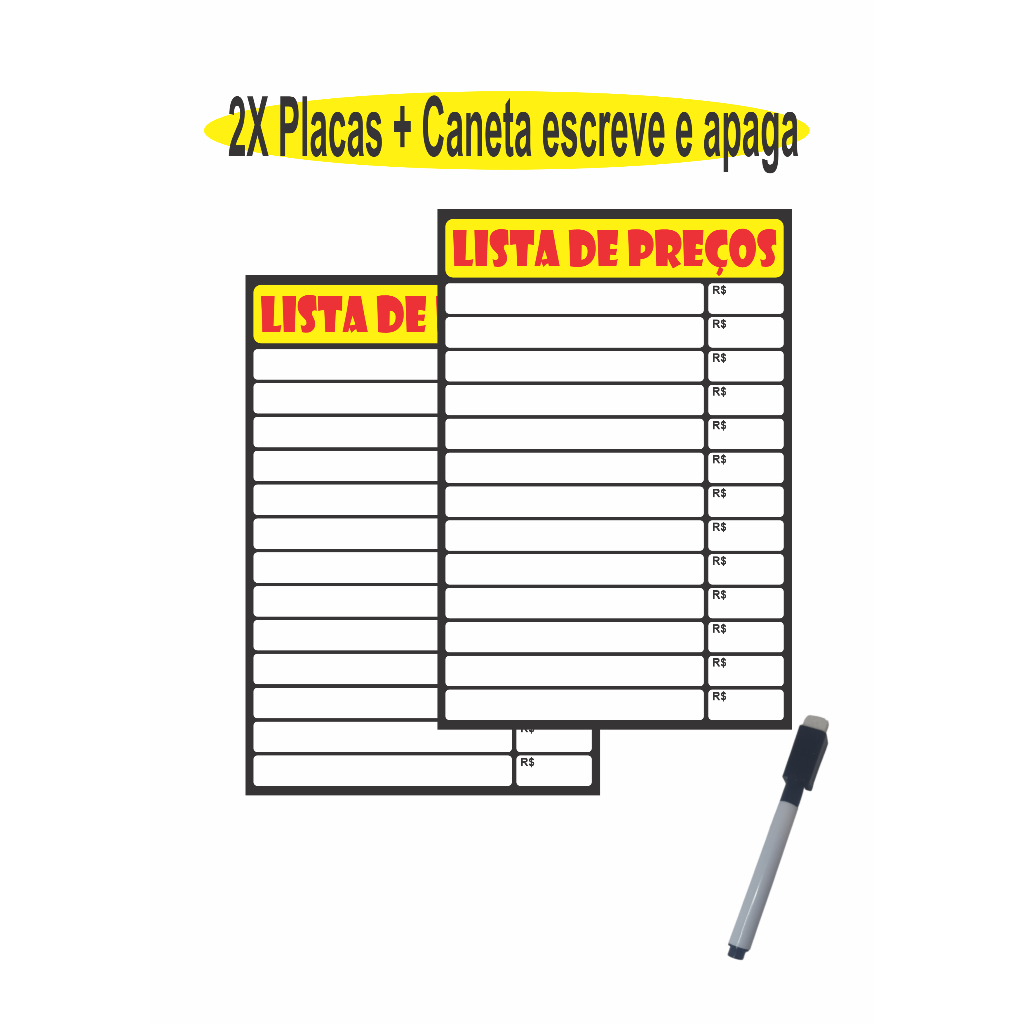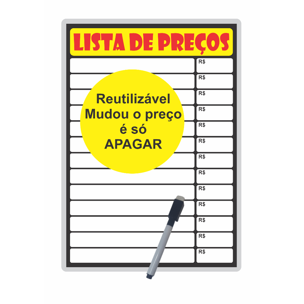 Placa de Preço Cartaz Lista de Preços Reutilizável