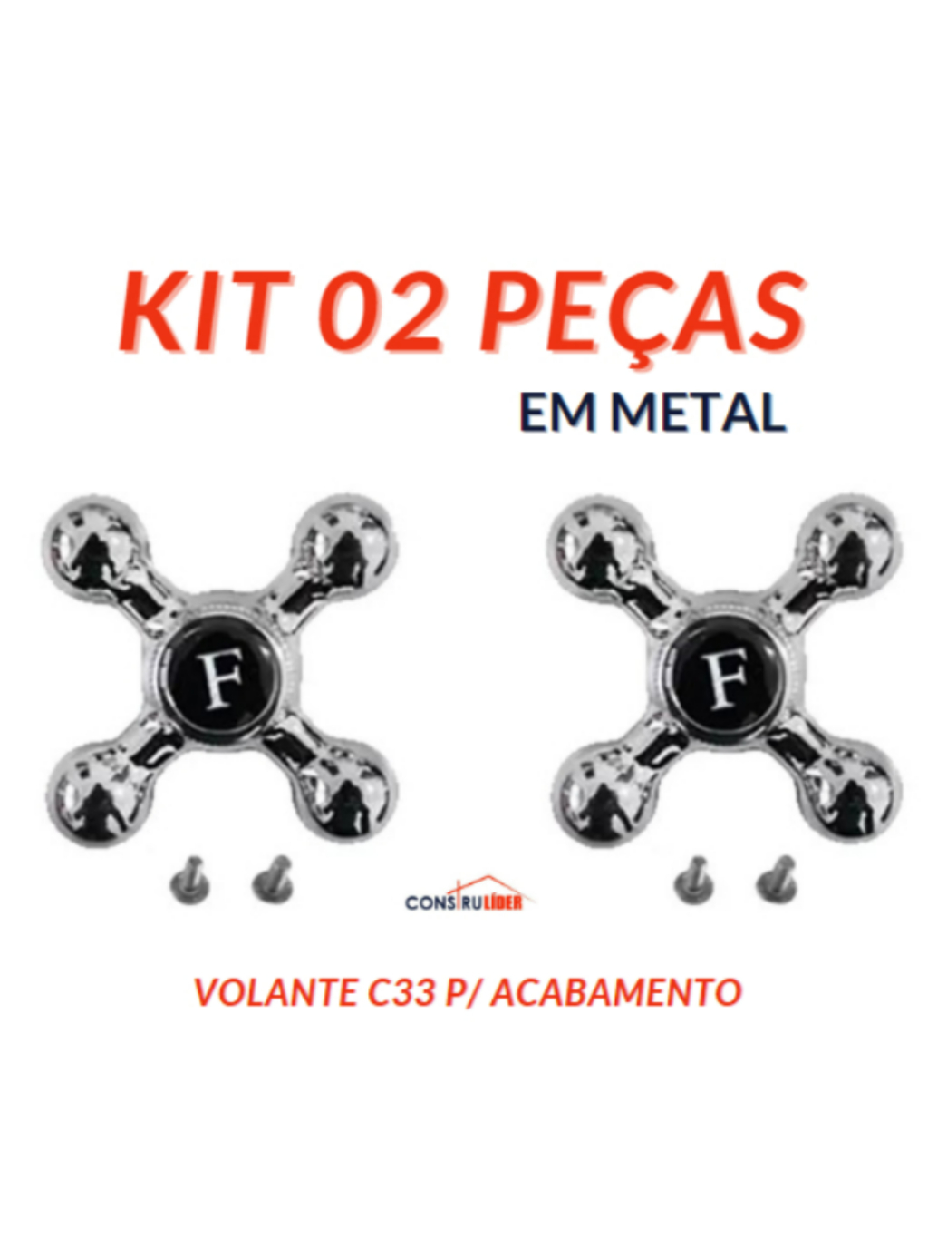 Kit 2 peças - Volante Cruzeta C33 em Metal para Acabamento de Registro de Chuveiro ou Torneira de Cozinha/Banheiro