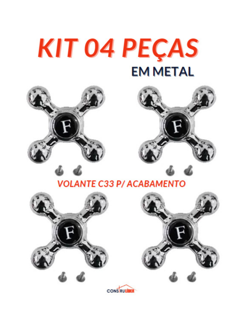 Kit 4 peças - Volante Cruzeta C33 em Metal para Acabamento de Registro de Chuveiro ou Torneira de Cozinha/Banheiro