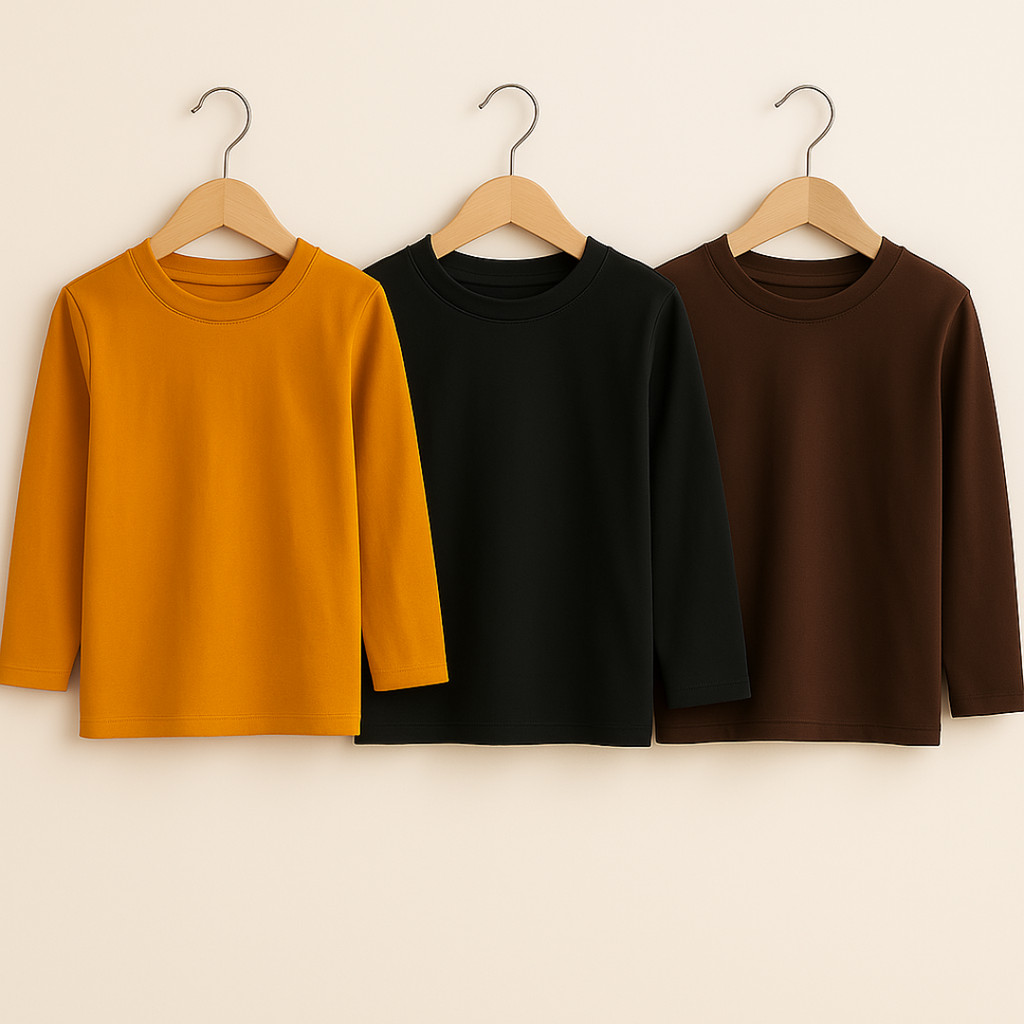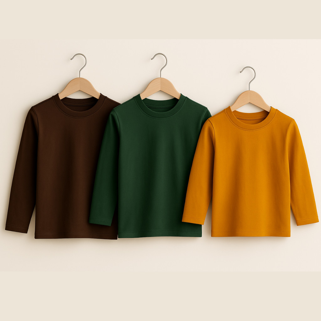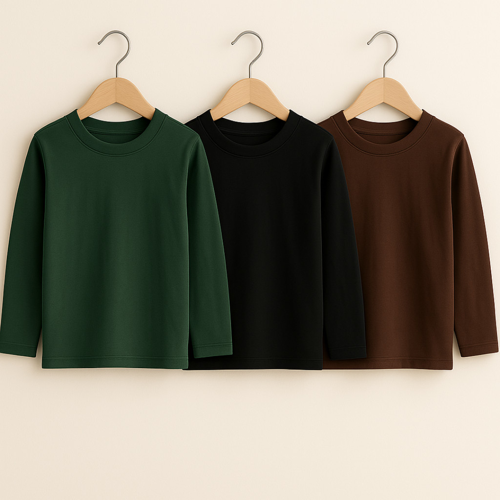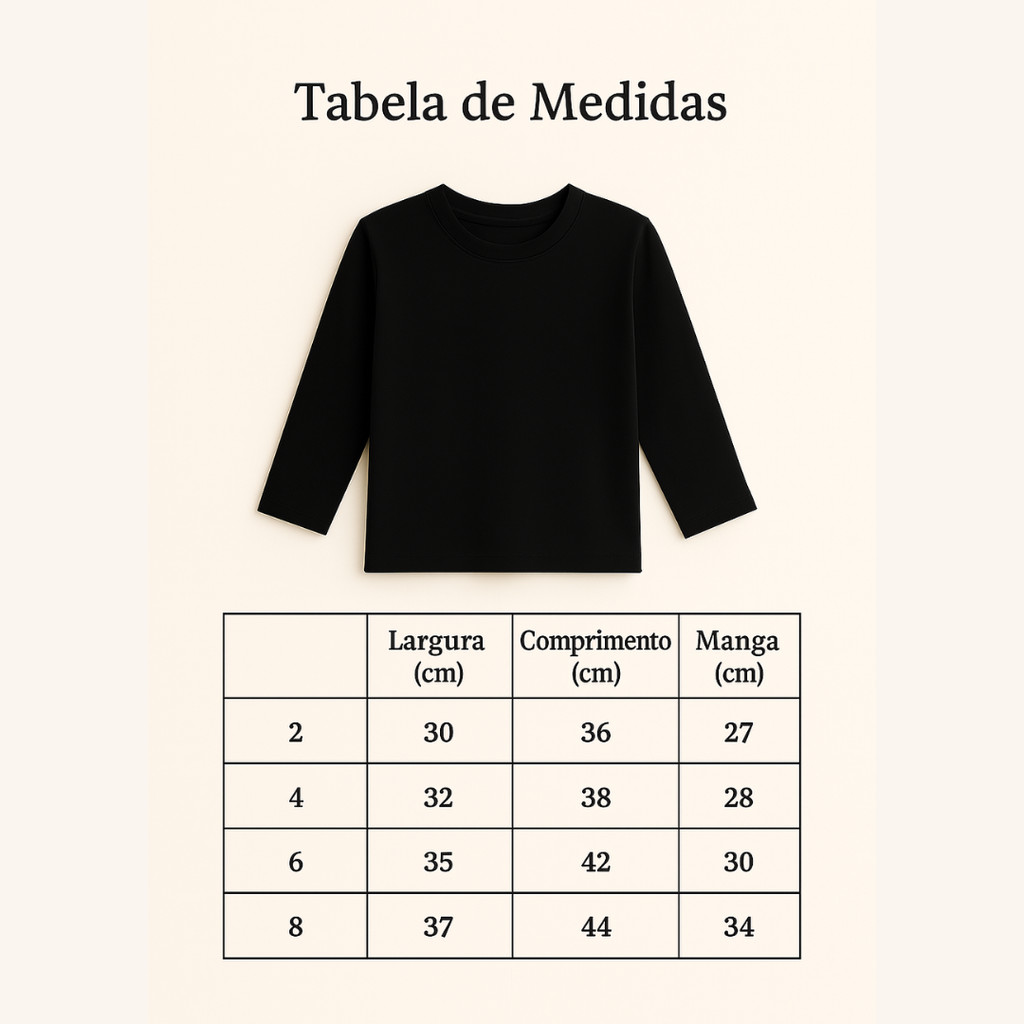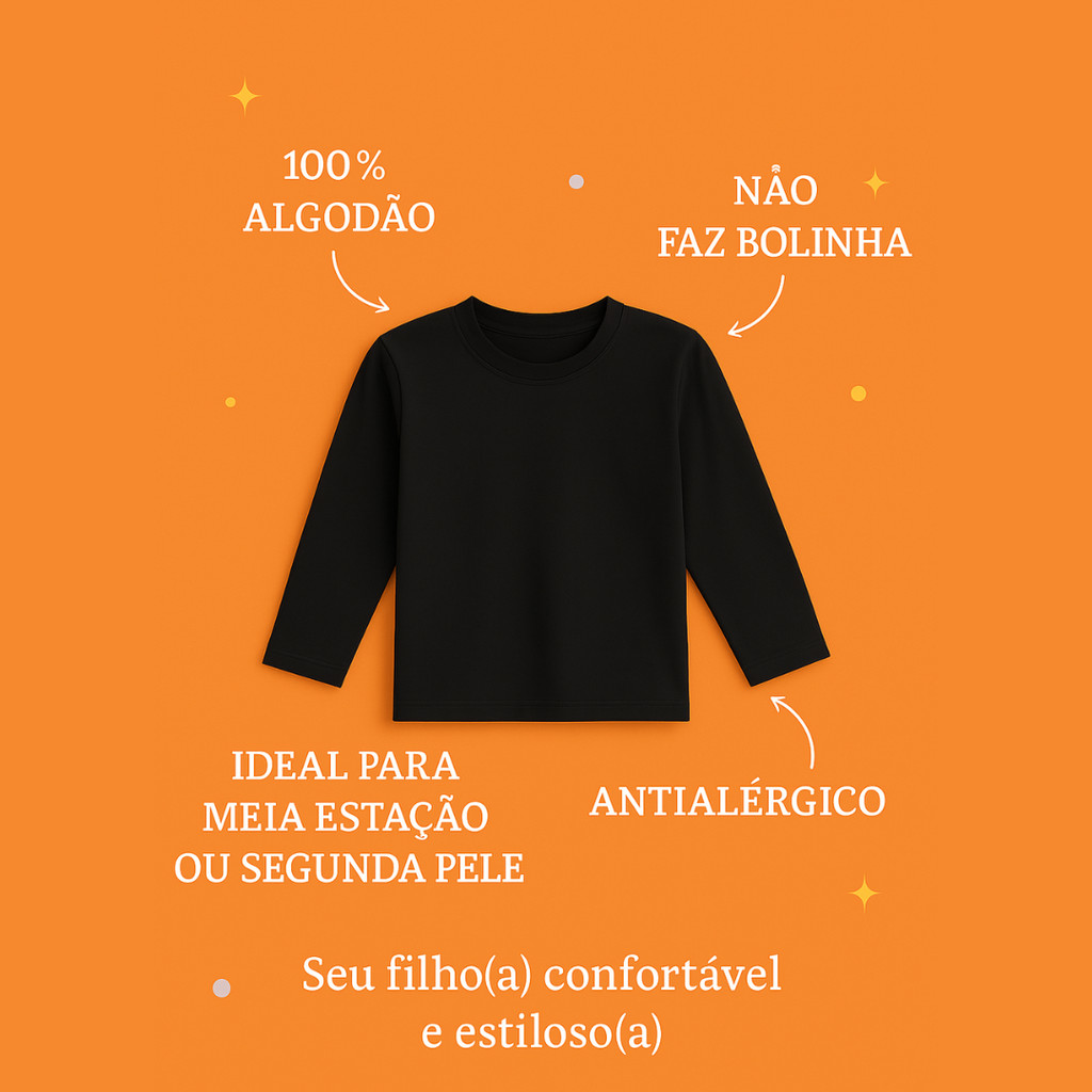 Kit 3 Camiseta Manga Longa Lisa Infantil Unissex Promoção