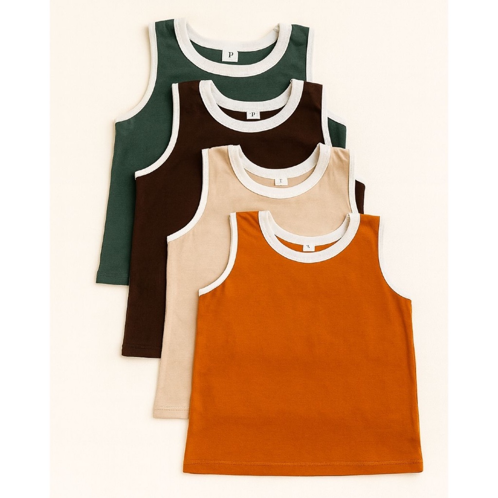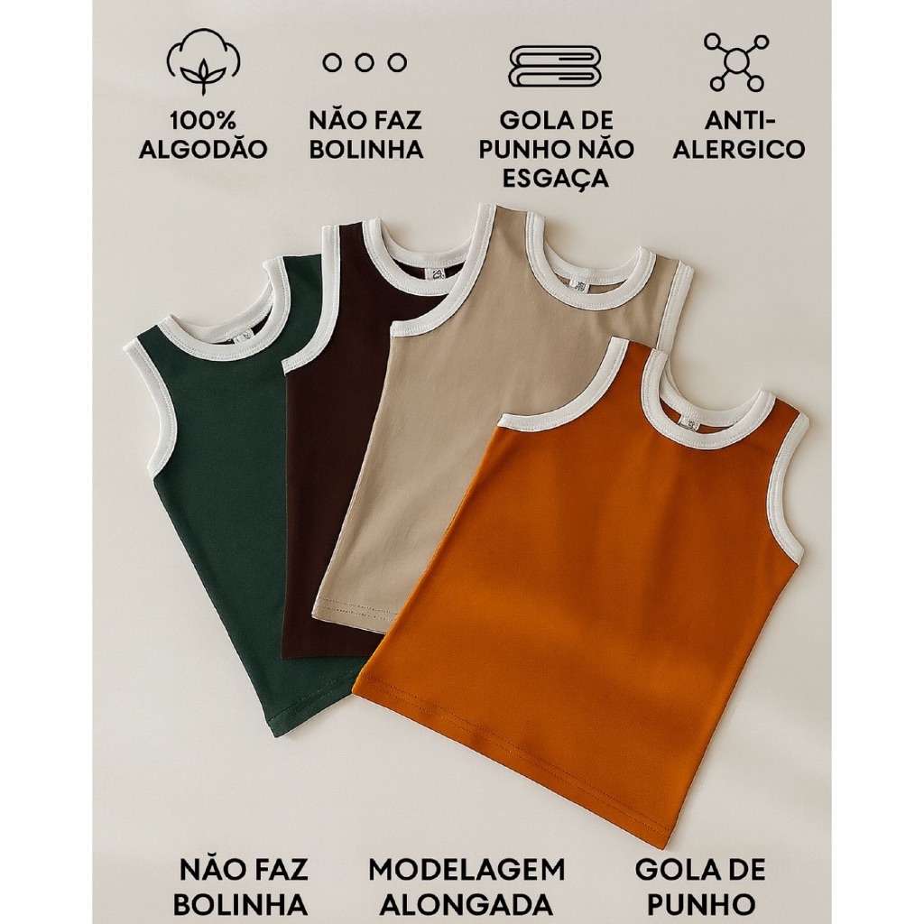 Kit 4 Peças Camiseta Regata Menino Bicolor Premium Algodão Confortável
