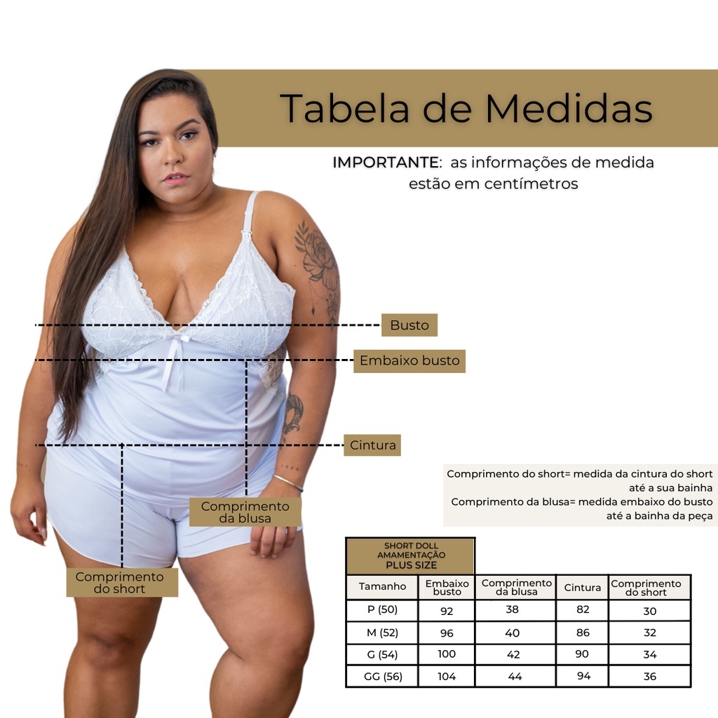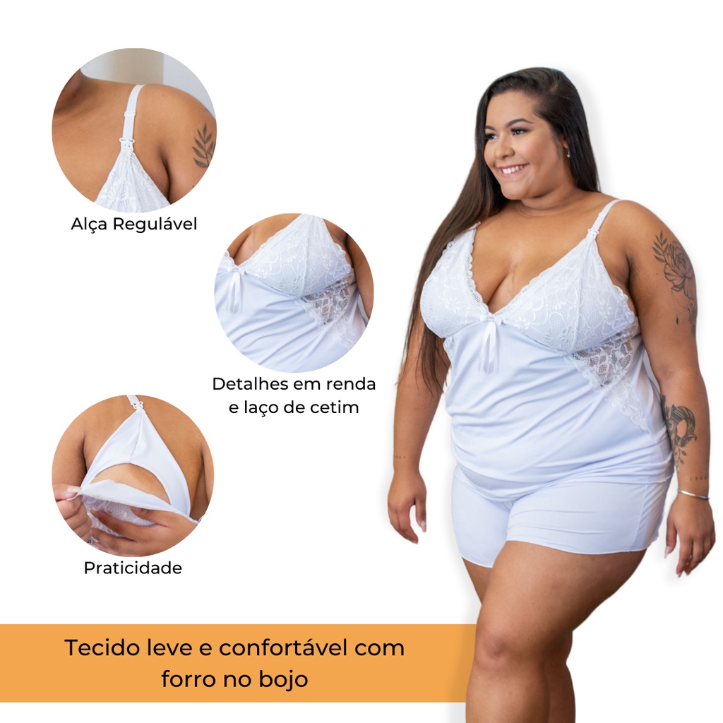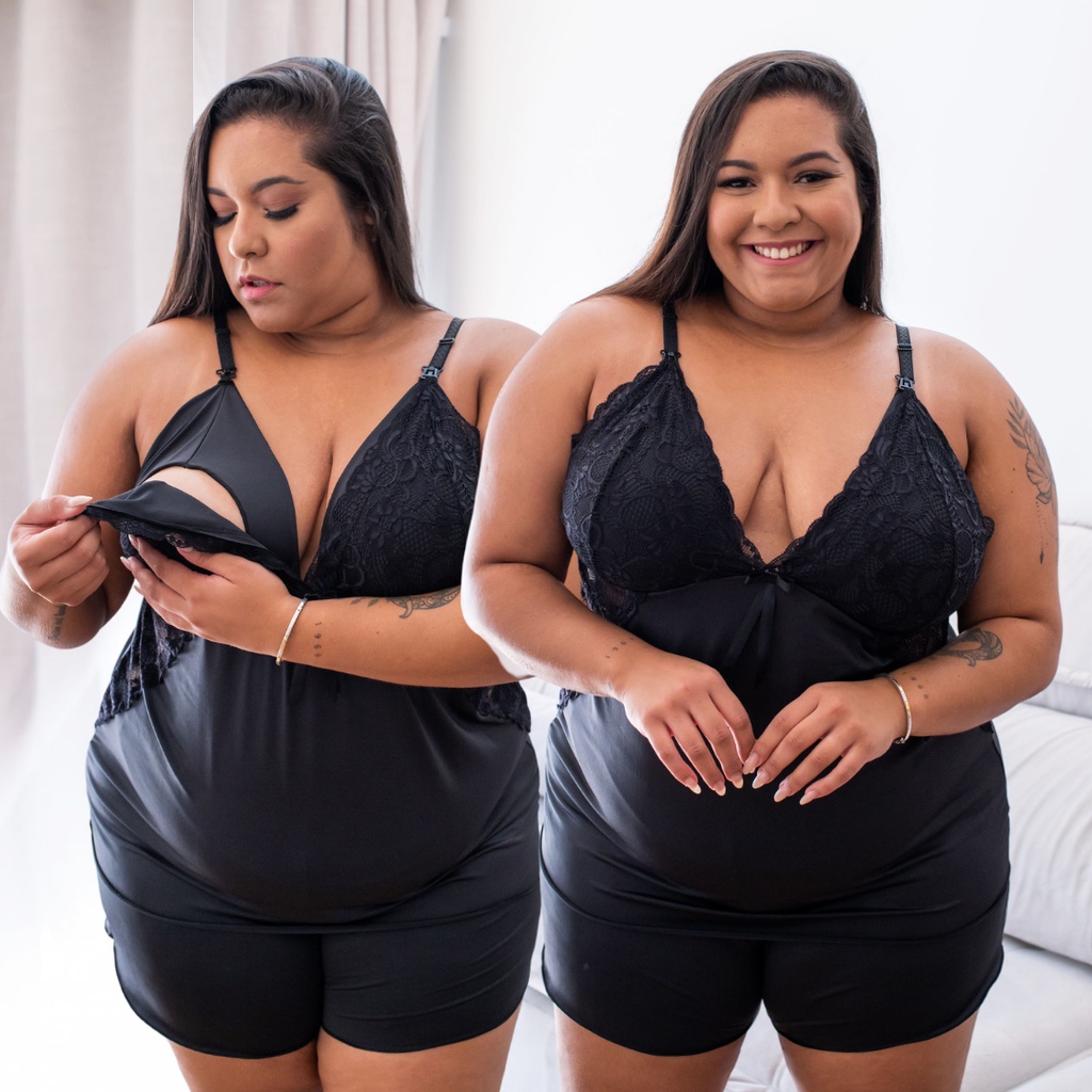 Short Doll Amamentação Plus Size 50 52 54 56 com Renda Maternidade Gestante Grande BELIT MODAS 2111