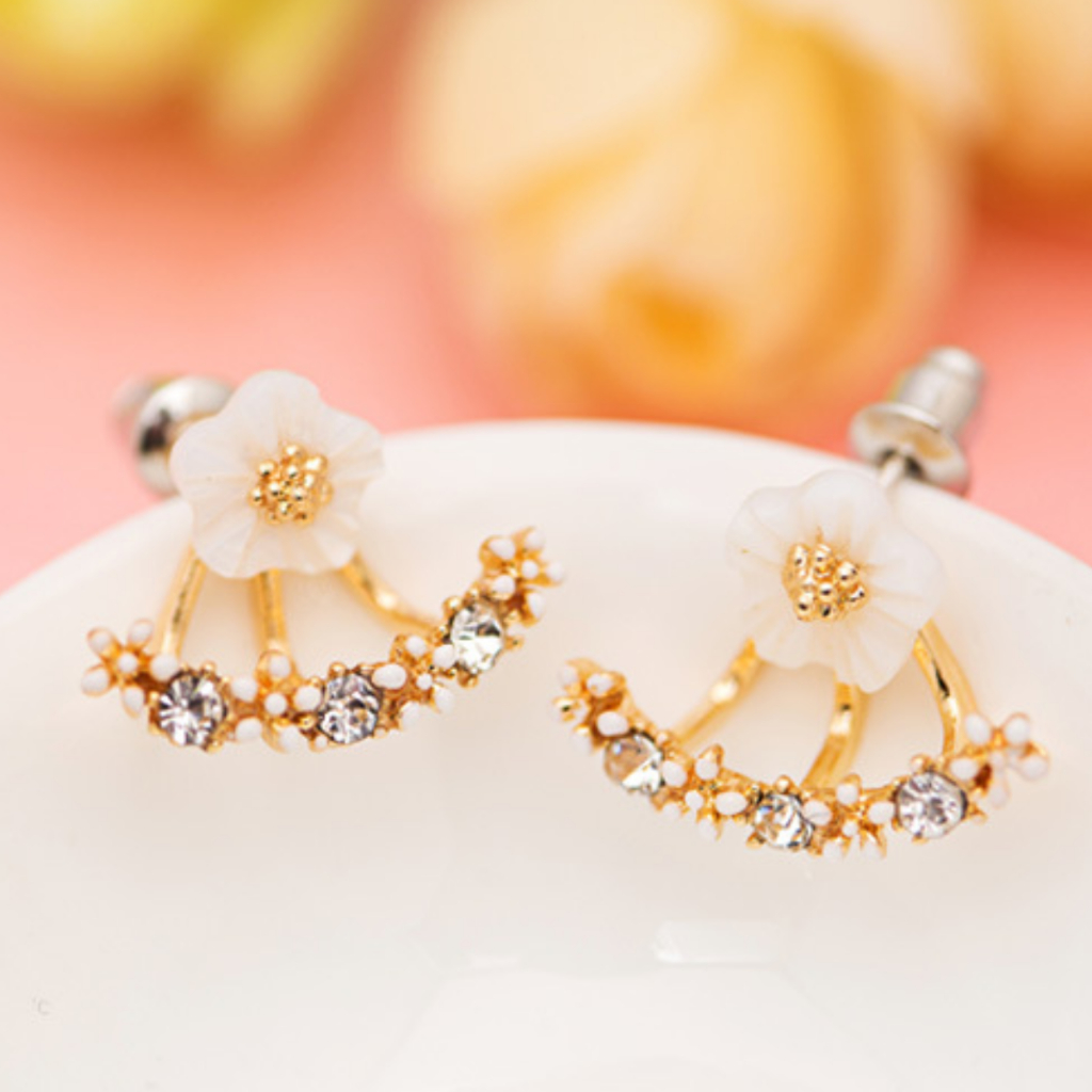 Brincos Flor Dourado Strass Sobrepor Delicado Feminino
