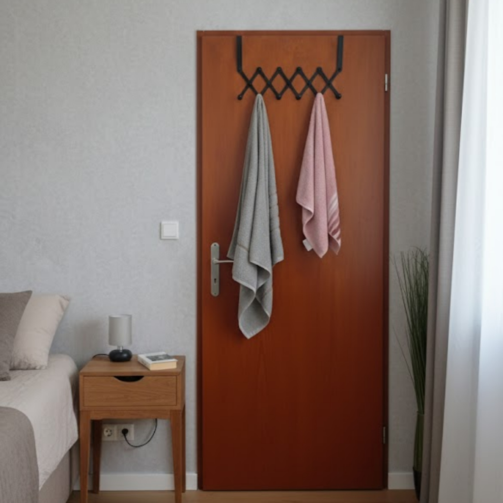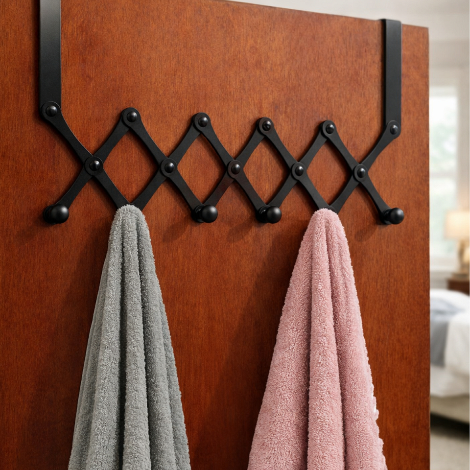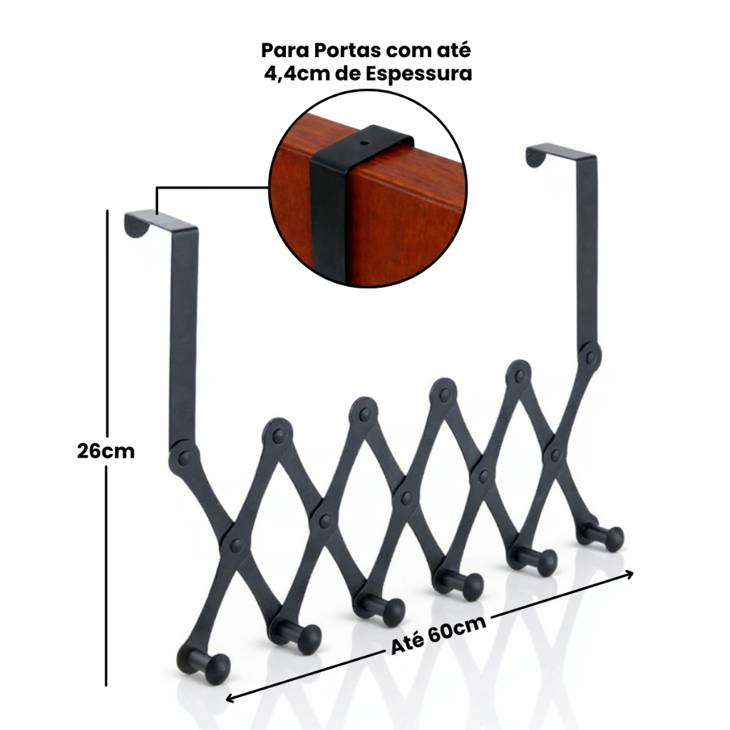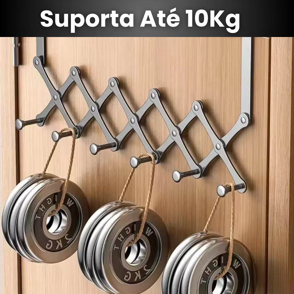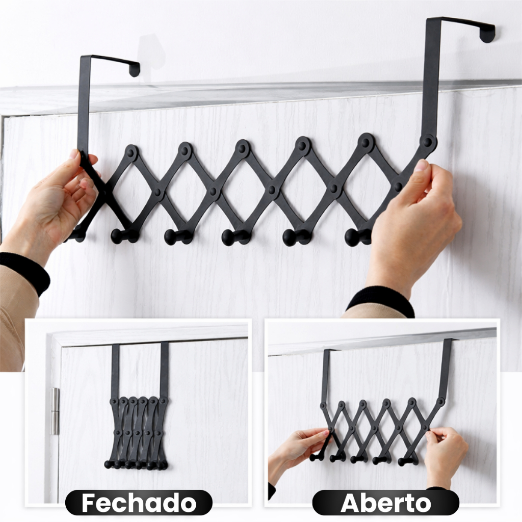 Cabide De Porta 6 Ganchos Articulado Retrátil Cabideiro de Porta Pendurar Toalha Roupas de Metal