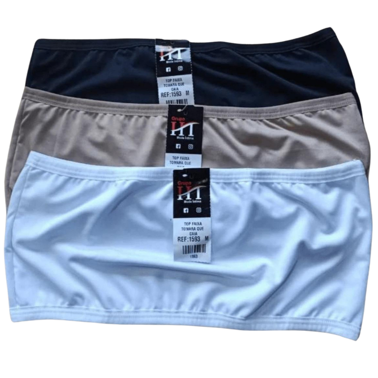 Kit 3 Cropped Faixa Top Tomara Que Caia Sem Alça Básico Liso Firme