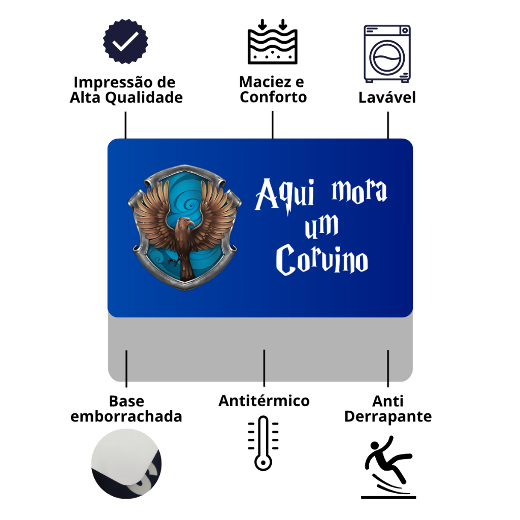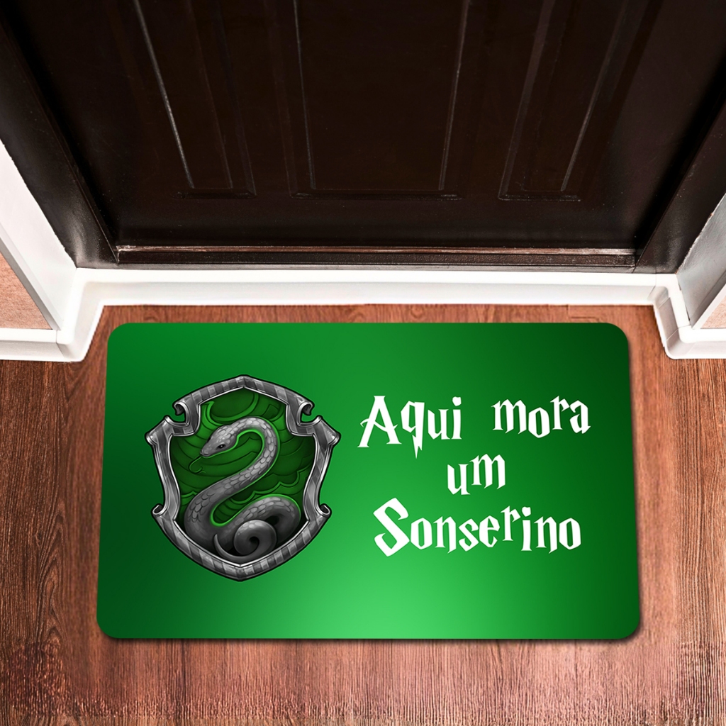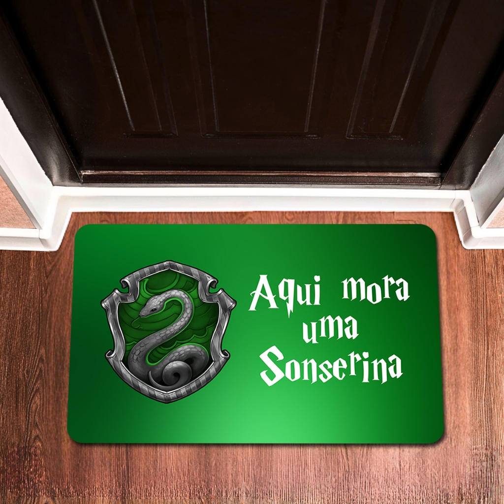 Tapete de Entrada Decorativo Harry Potter Anti Derrapante Casas de Hogwarts Sonserina 55x35cm