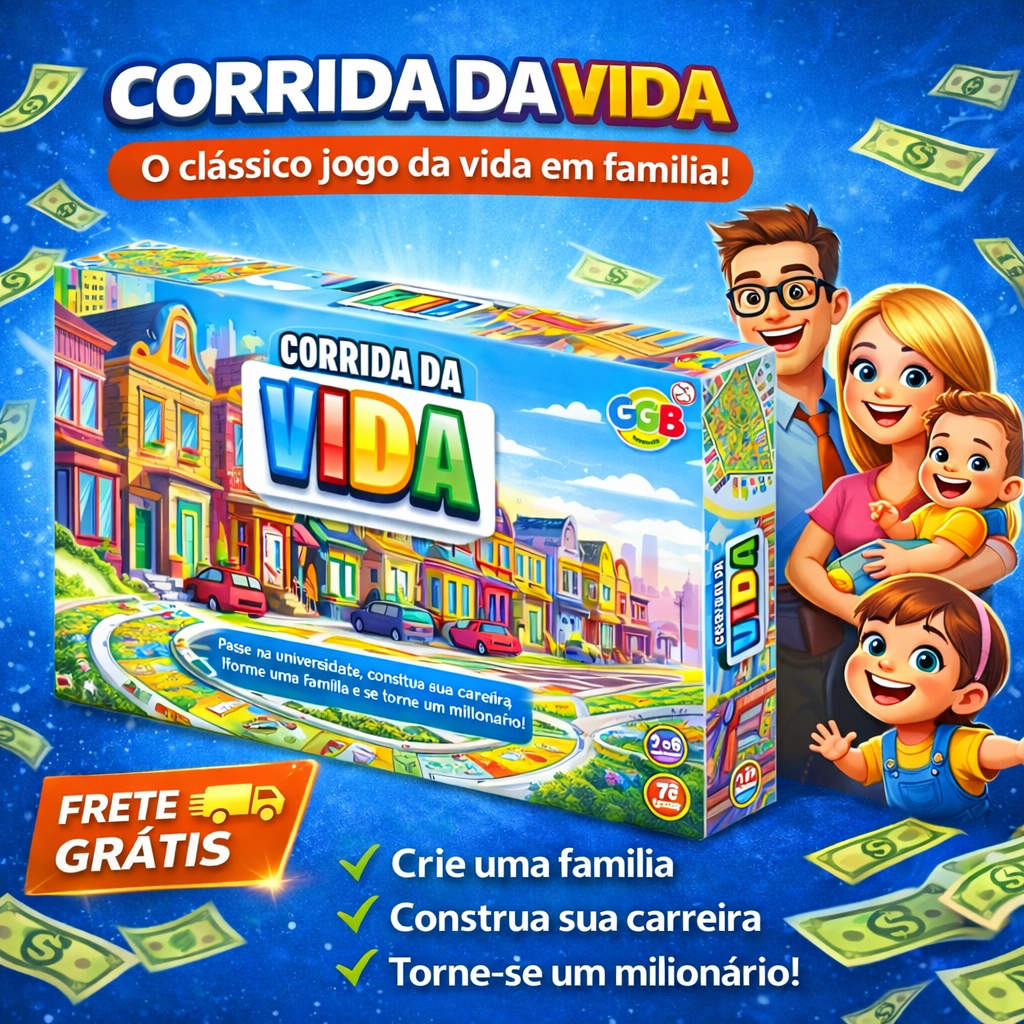 Jogo de Tabuleiro Corrida da Vida Completo com Cartas e Dinheiro Criança Adulto Familia