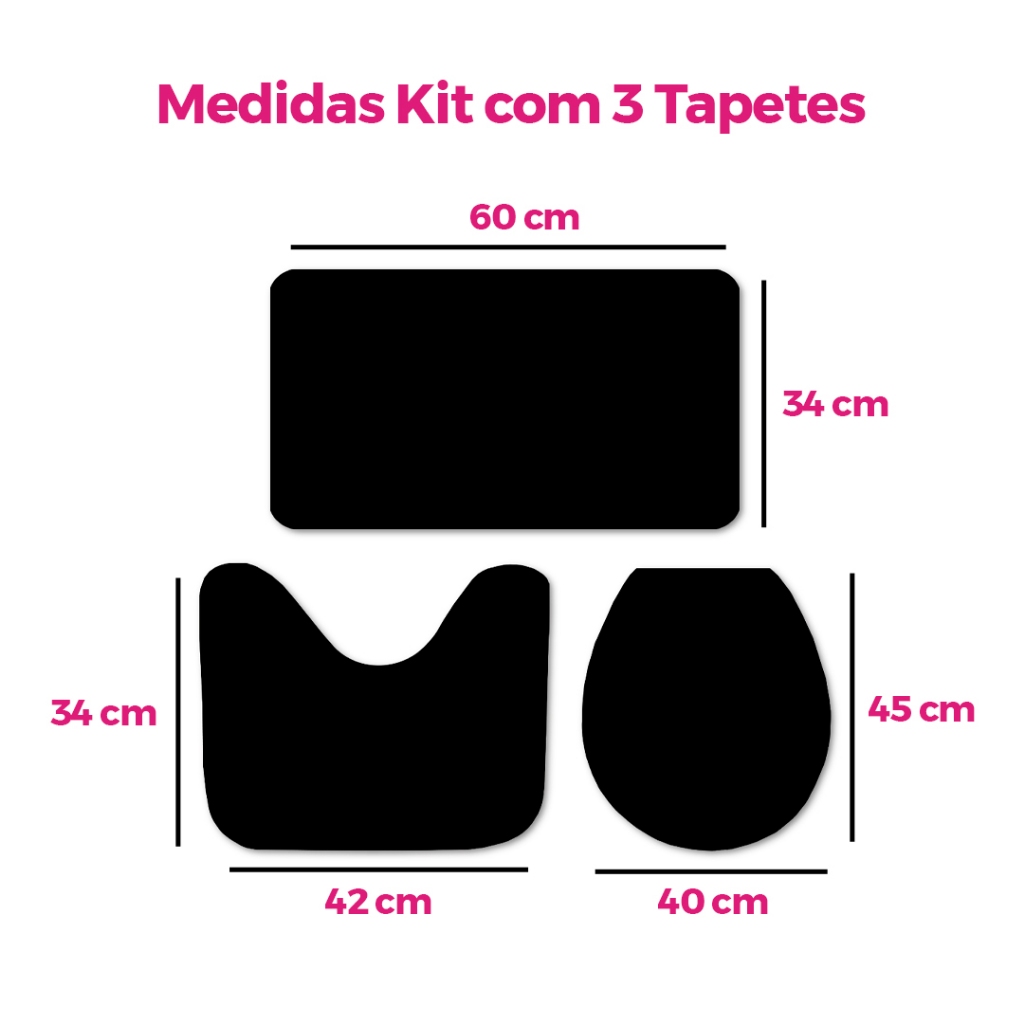 Kit de 3 Tapetes para Banheiro Decorativo Antiderrapante