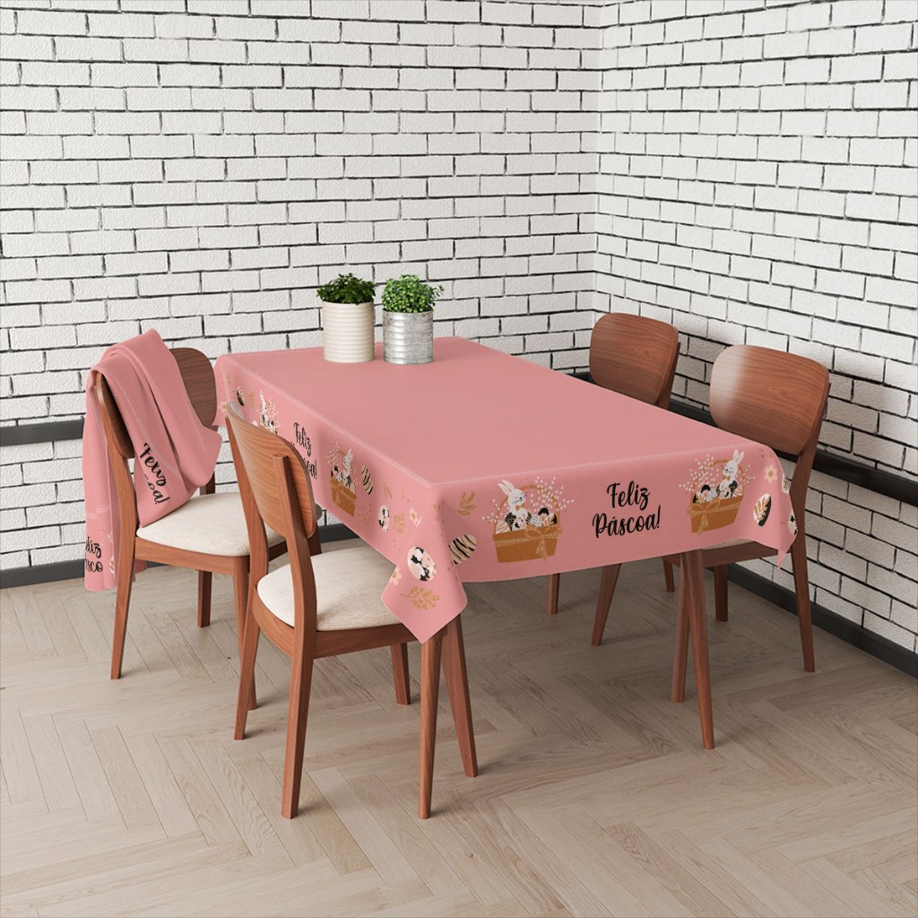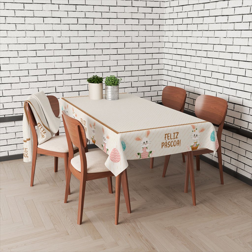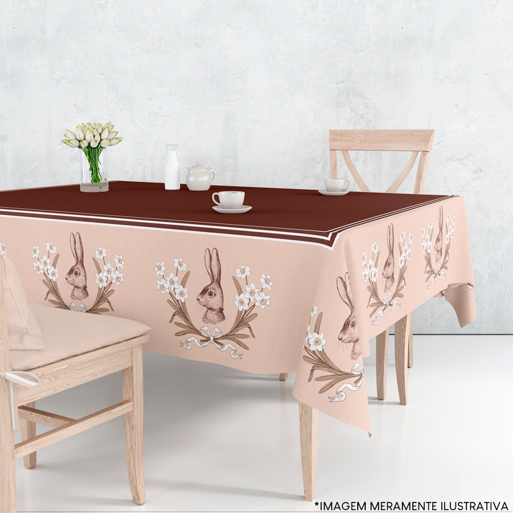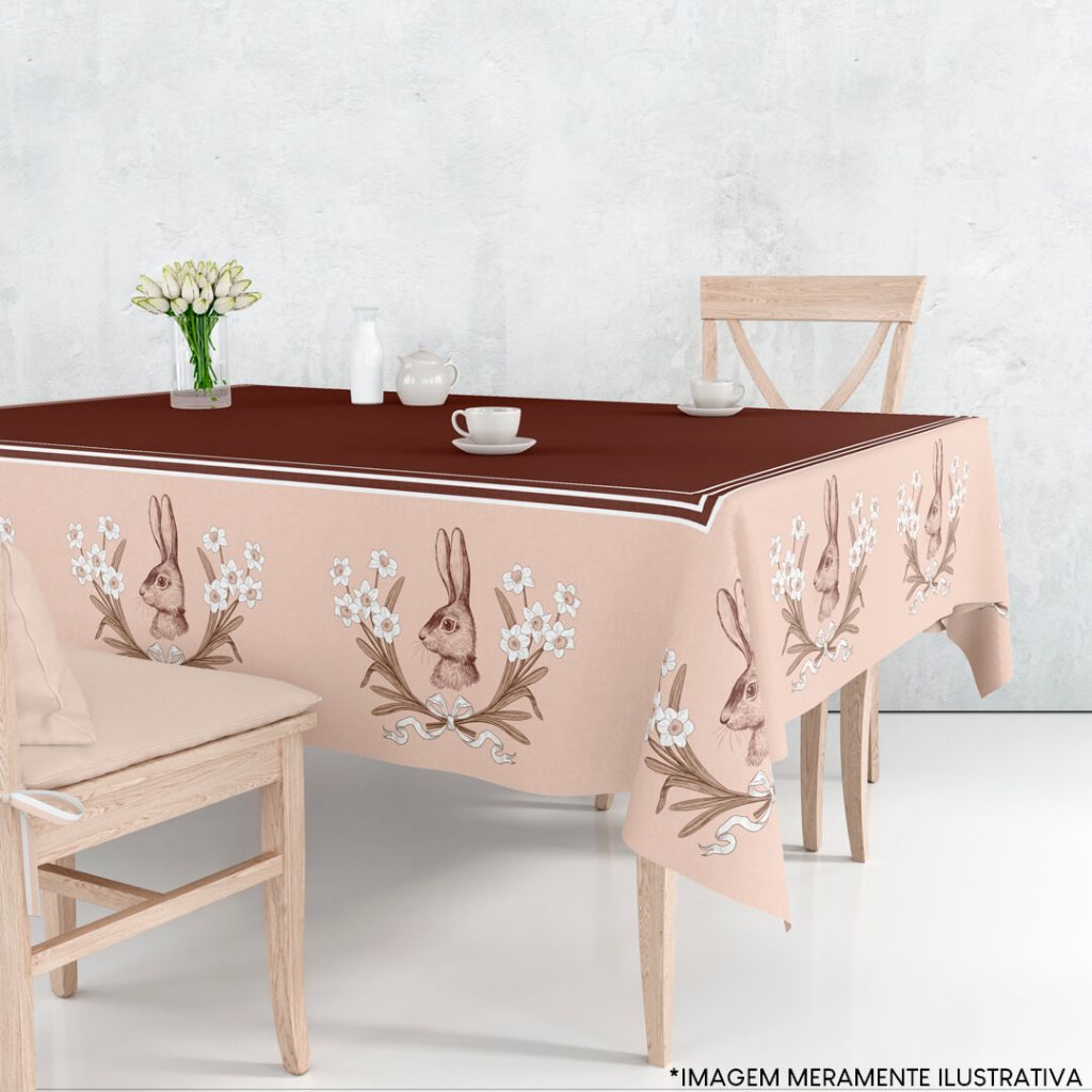 Toalha de Mesa Páscoa Retangular Serve 4 e 6 Lugares Chocolate