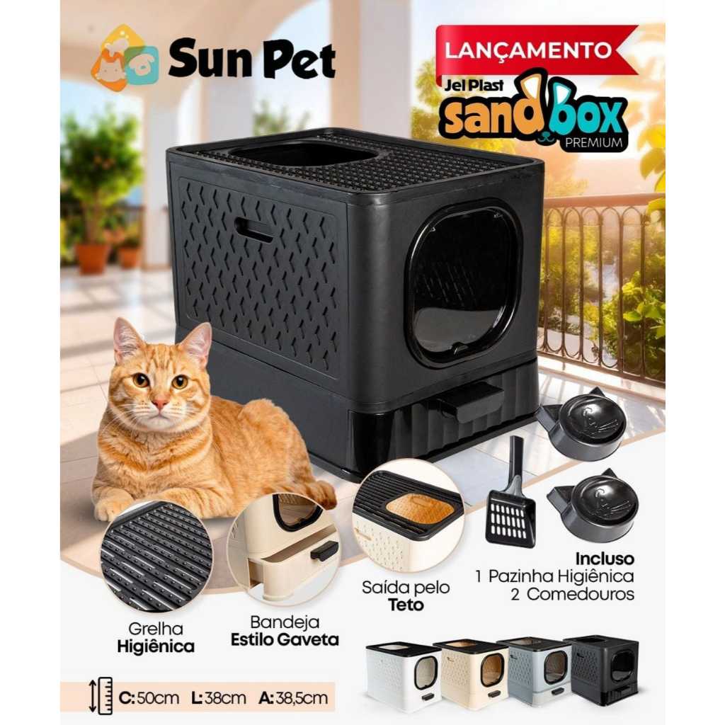 Caixa de Areia para Gato Fechada Quadrada Banheiro Pet Premium para Gatos