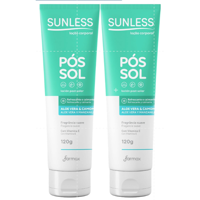 Kit Loção Pós Sol com Aloe Vera e Camomila Sunless 120g Alívio e Hidratação Envio Imediato