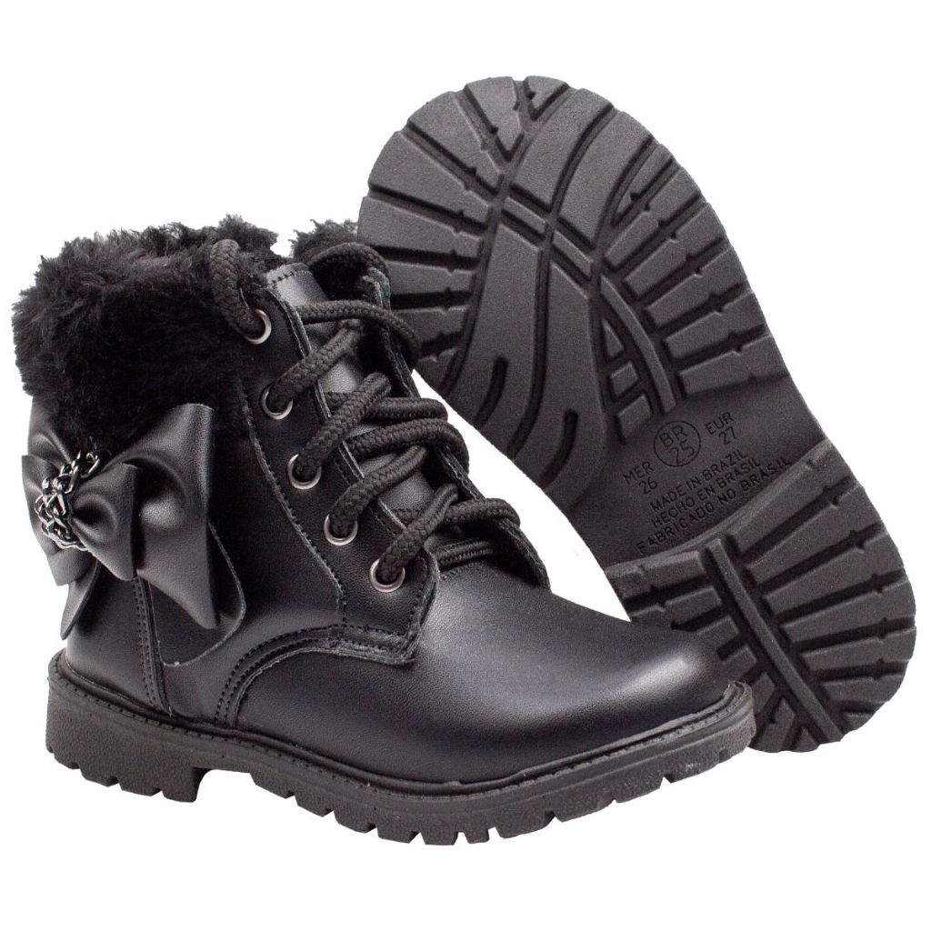 Bota Infantil Feminina com Laço em Napa Confortável e Solado Tratorado