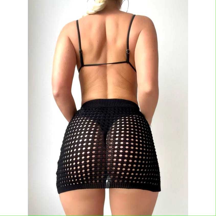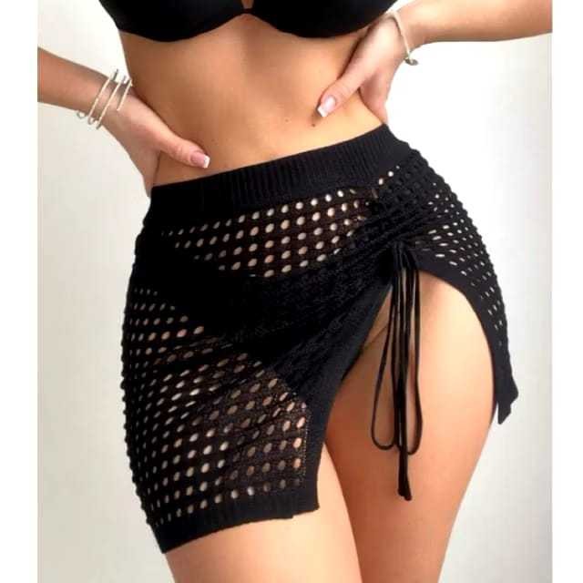 Saida Praia Saia mini Crochê Tricot com Cordão Lateral Fenda new gloss