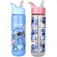 Squeeze Com Canudo Garrafa De Água Academia Infantil Plástico 700ml Stitch