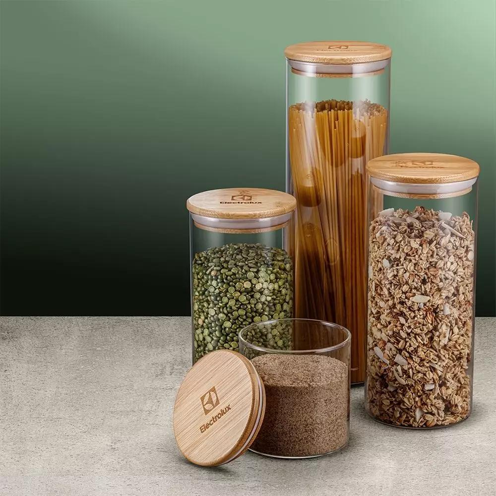 Jogo de Potes Porta-Mantimentos com Tampa de Bambu 4 unidades