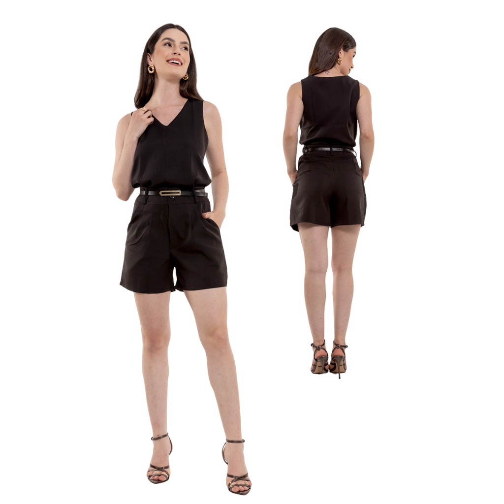 Conjunto Feminino Social Regata em Alfaiataria (com Cinto) Blusa e Short HBD-CON-059