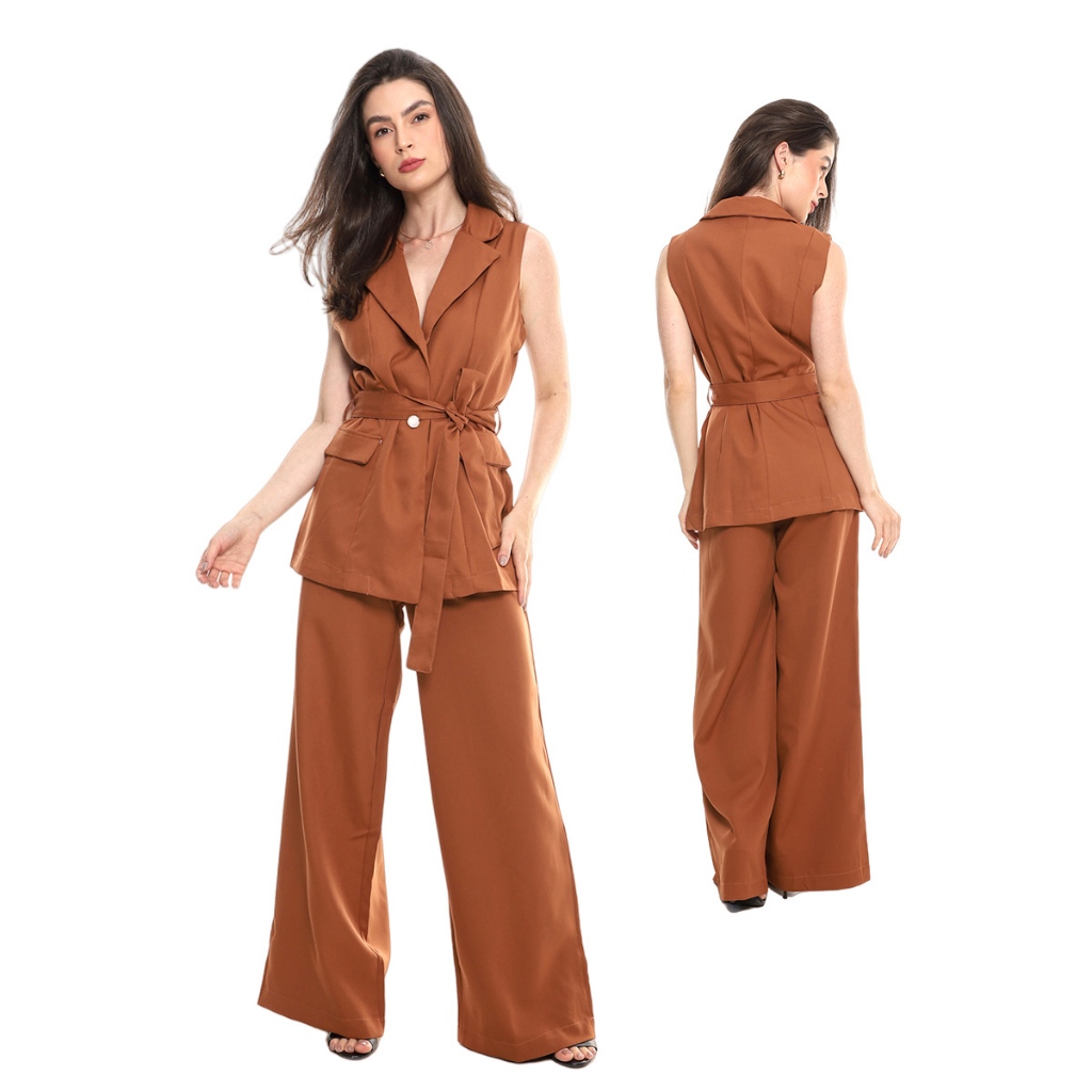 Conjunto Calça Pantalona social e Blazer colete feminino .HBD-CON-049