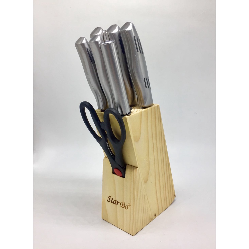 Conjunto Facas Para Cozinha 8 Pcs Cepo Madeira