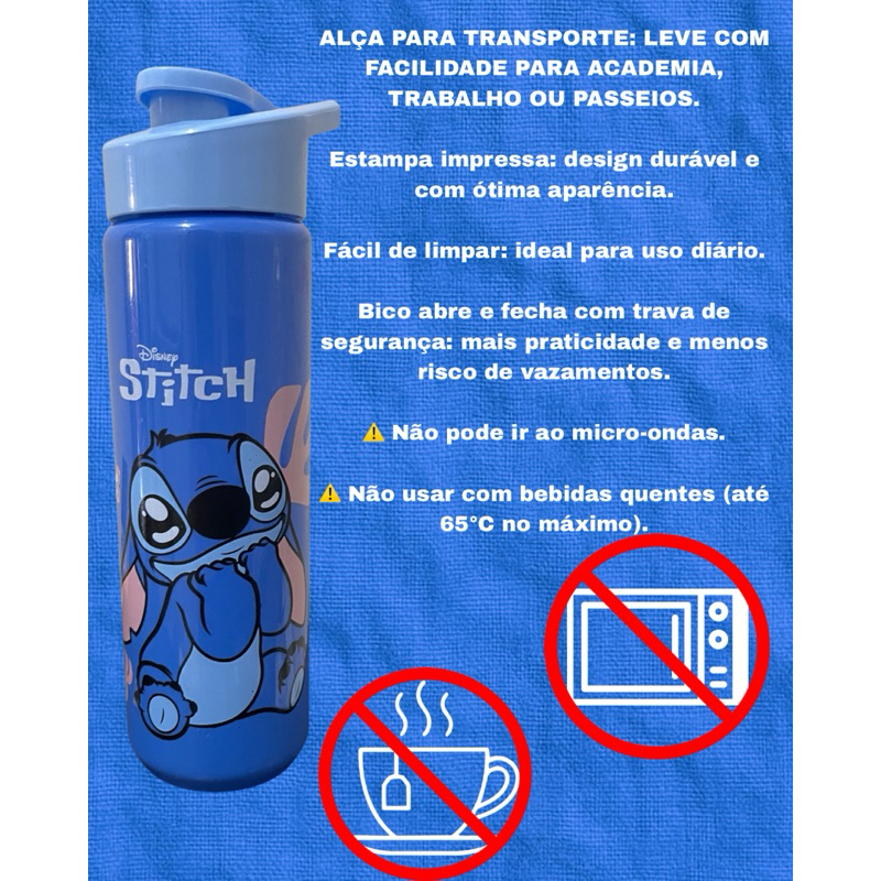 Garrafa De Água Squeeze Stitch 700ml Plástico cor azul