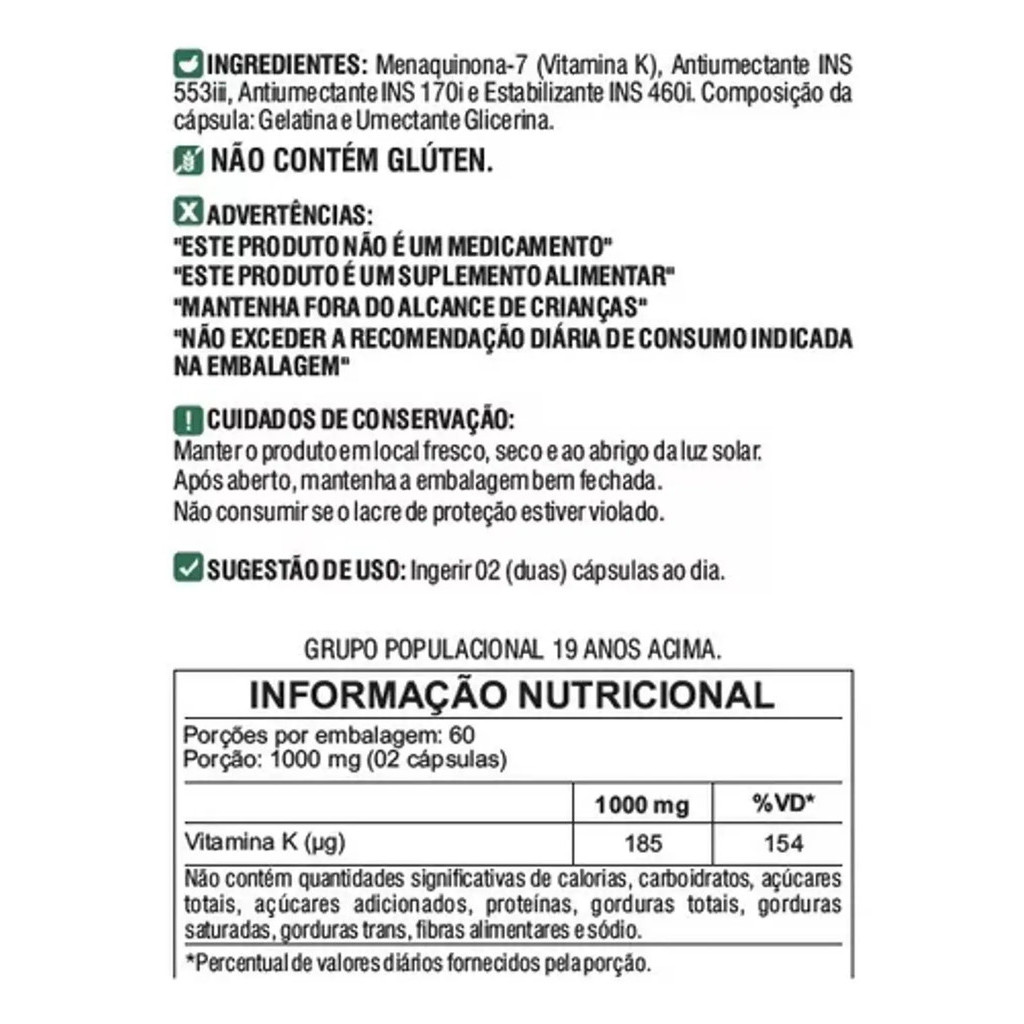 Kit Com 4x Vitamina K2 500mg MK7 Menaquinona -7 Floral Ervas