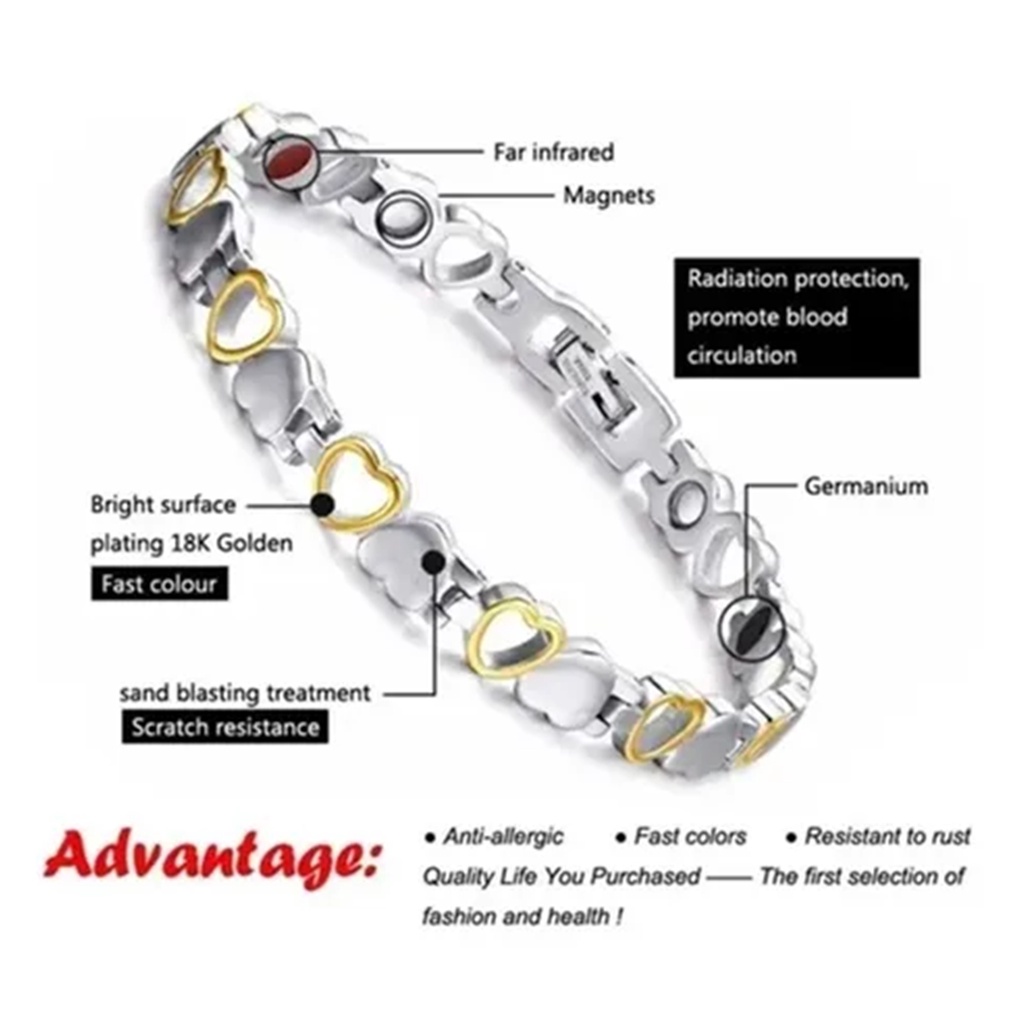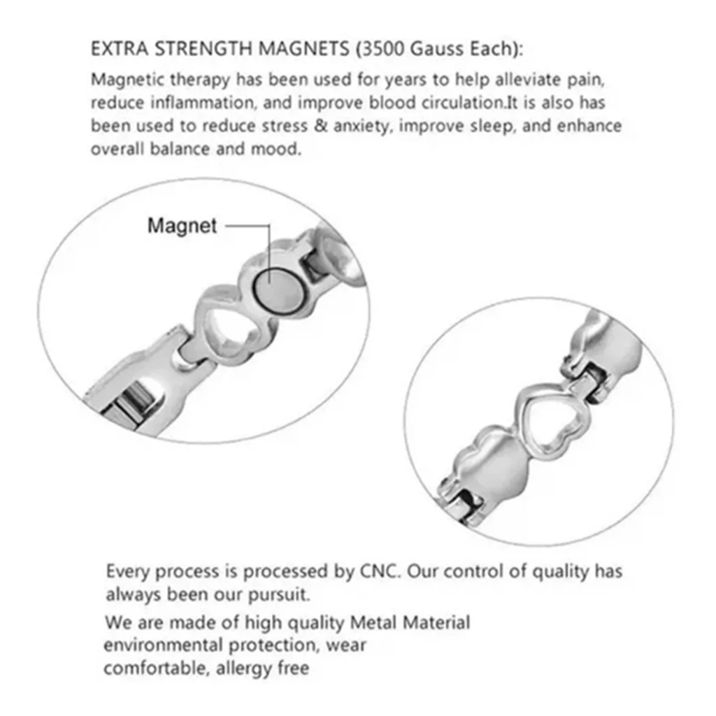 Pulseira Feminina Coração Imantada Terapia Magnética Bracelete