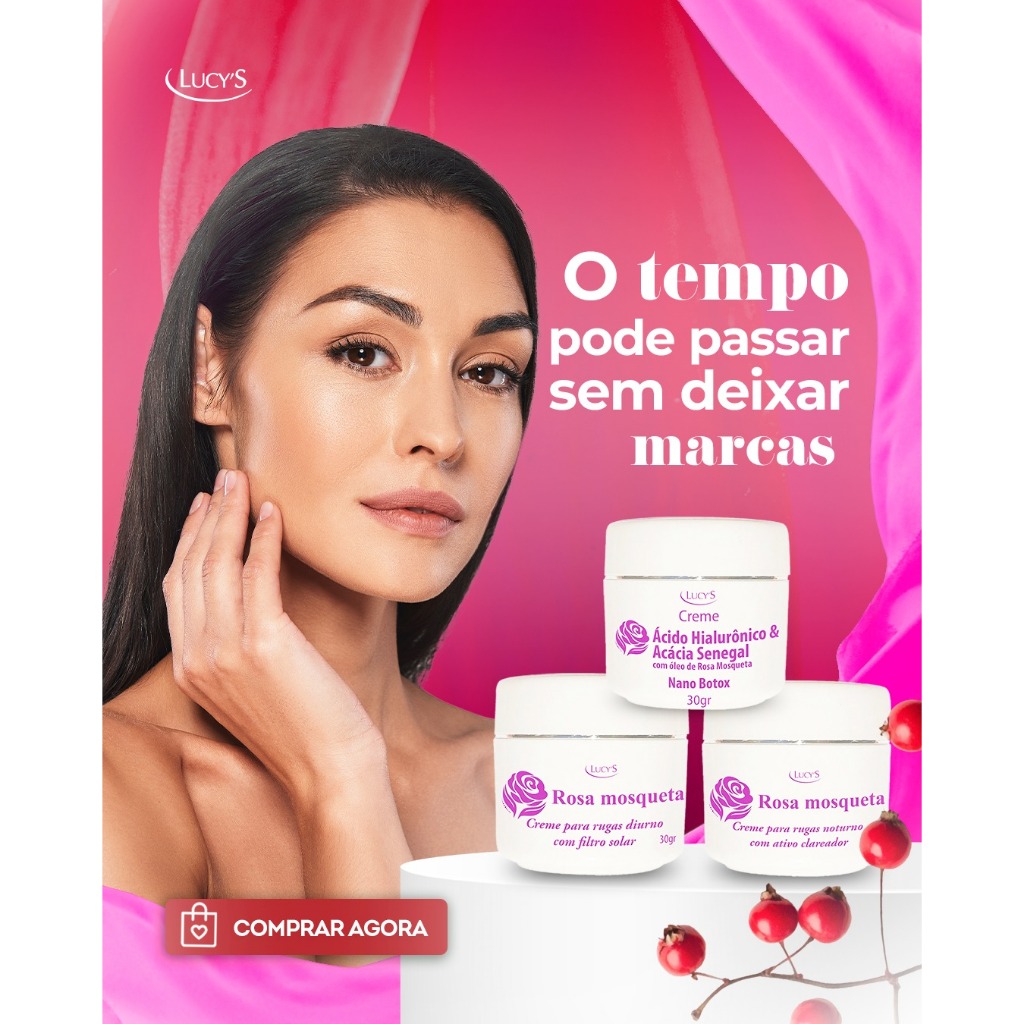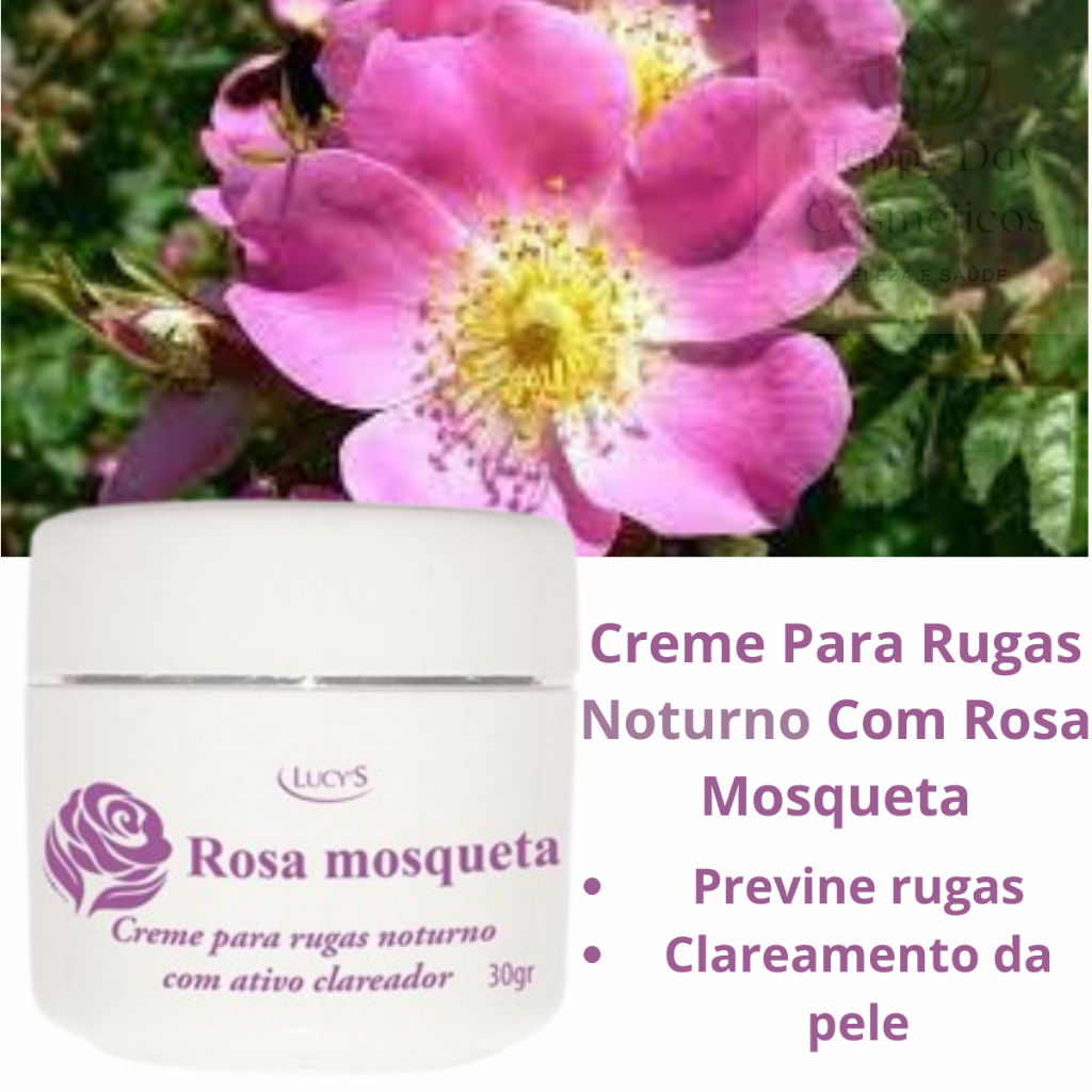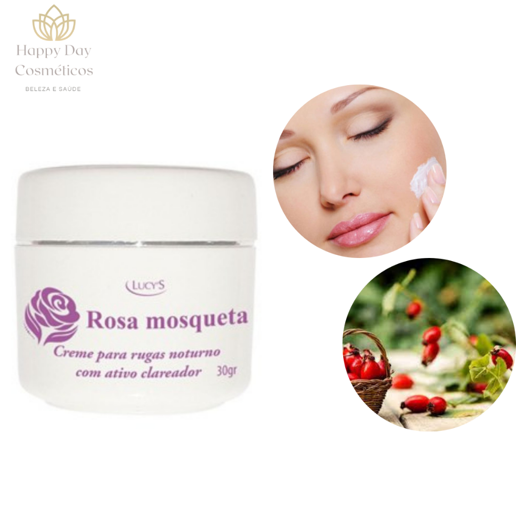 Creme Facial Rosa Mosqueta Para Rugas e Manchas Escuras Antirrugas e Clareador Noturno Lucys 30g