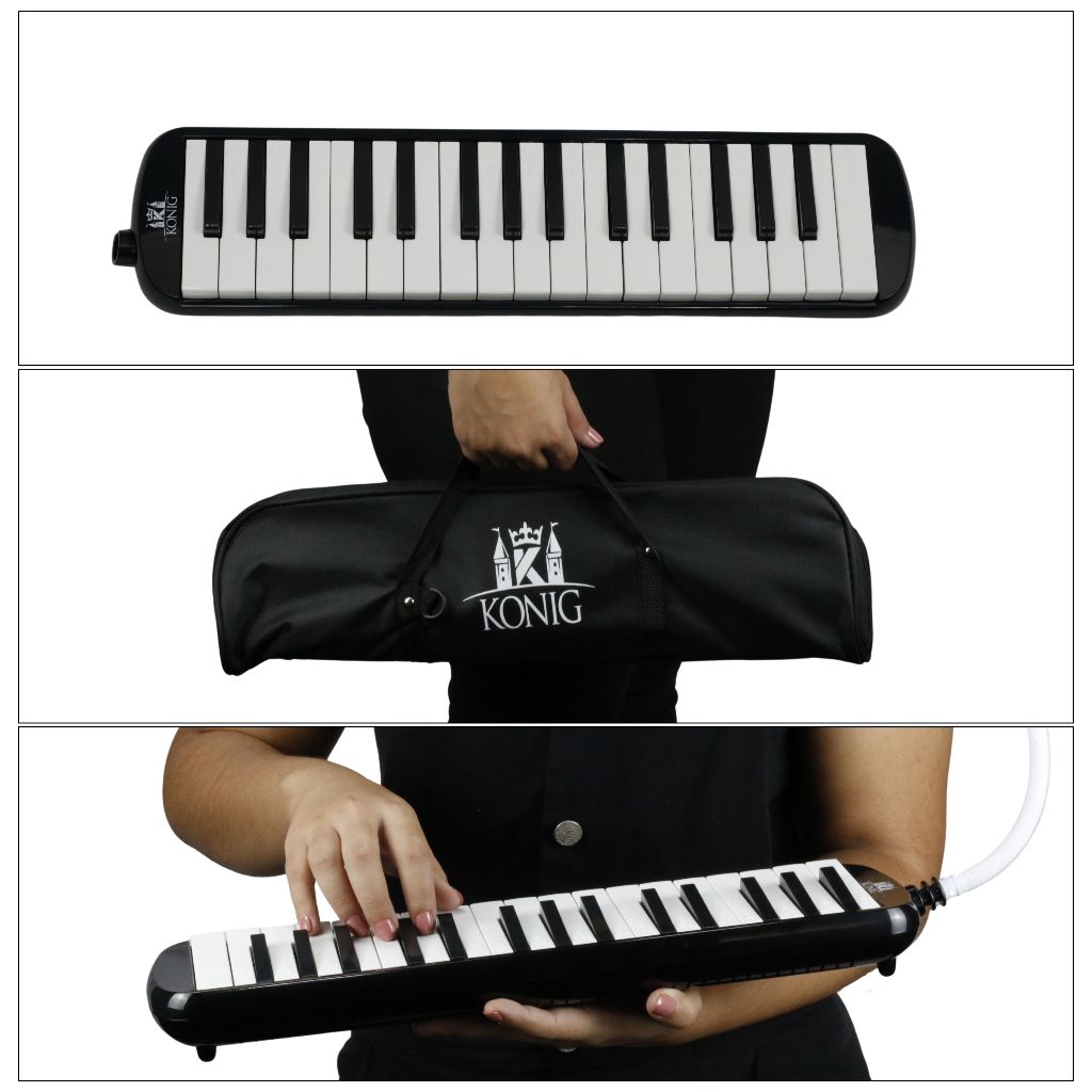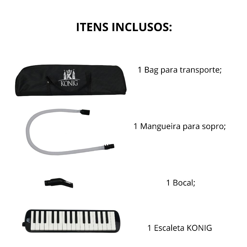 Escaleta Teclado De Sopro 32 Teclas Melodica com capa Bocal e Mangueira Preto Rosa Azul